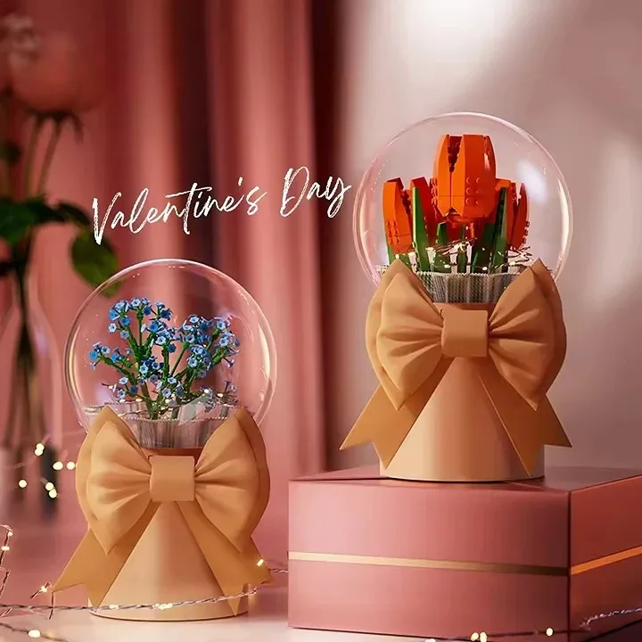 EPT Hot Sale Creative Mini Particle Artificial Flower Model Toy and Electronic Toy Gift Box Bouquet Flower Building Block Set