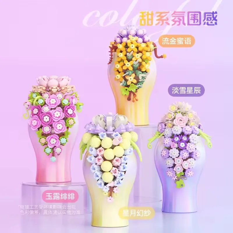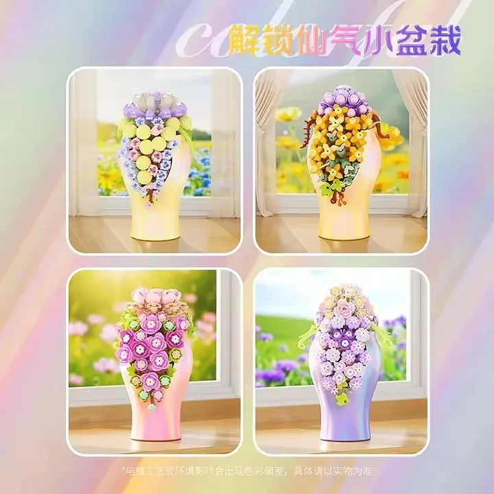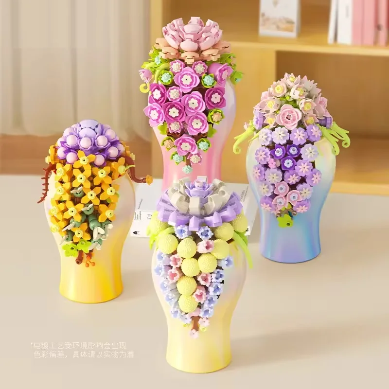 EPT New Arrival Plant Series Beautiful 4 Styles Succulent Plant Brick Building Block Educational Toy for Kids