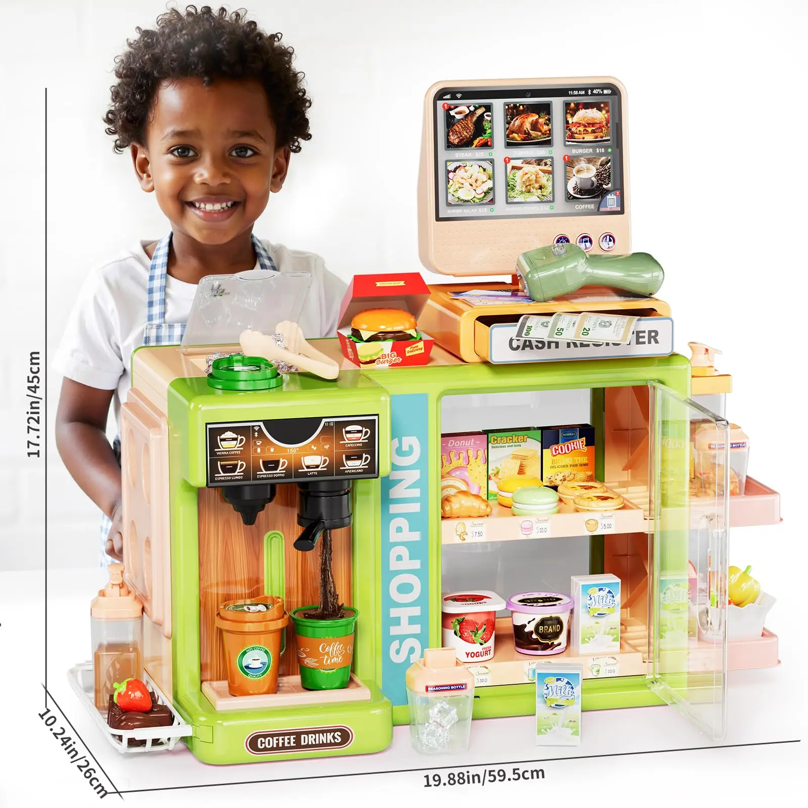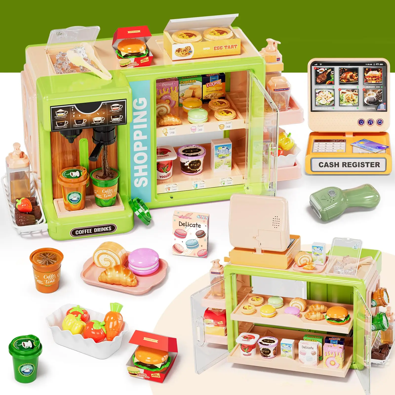 EPT 5-in-1 Grocery Supermarket Toy with Touchscreen Cashier Mini Coffee Maker Play Food Play Money Pretend Play Toys