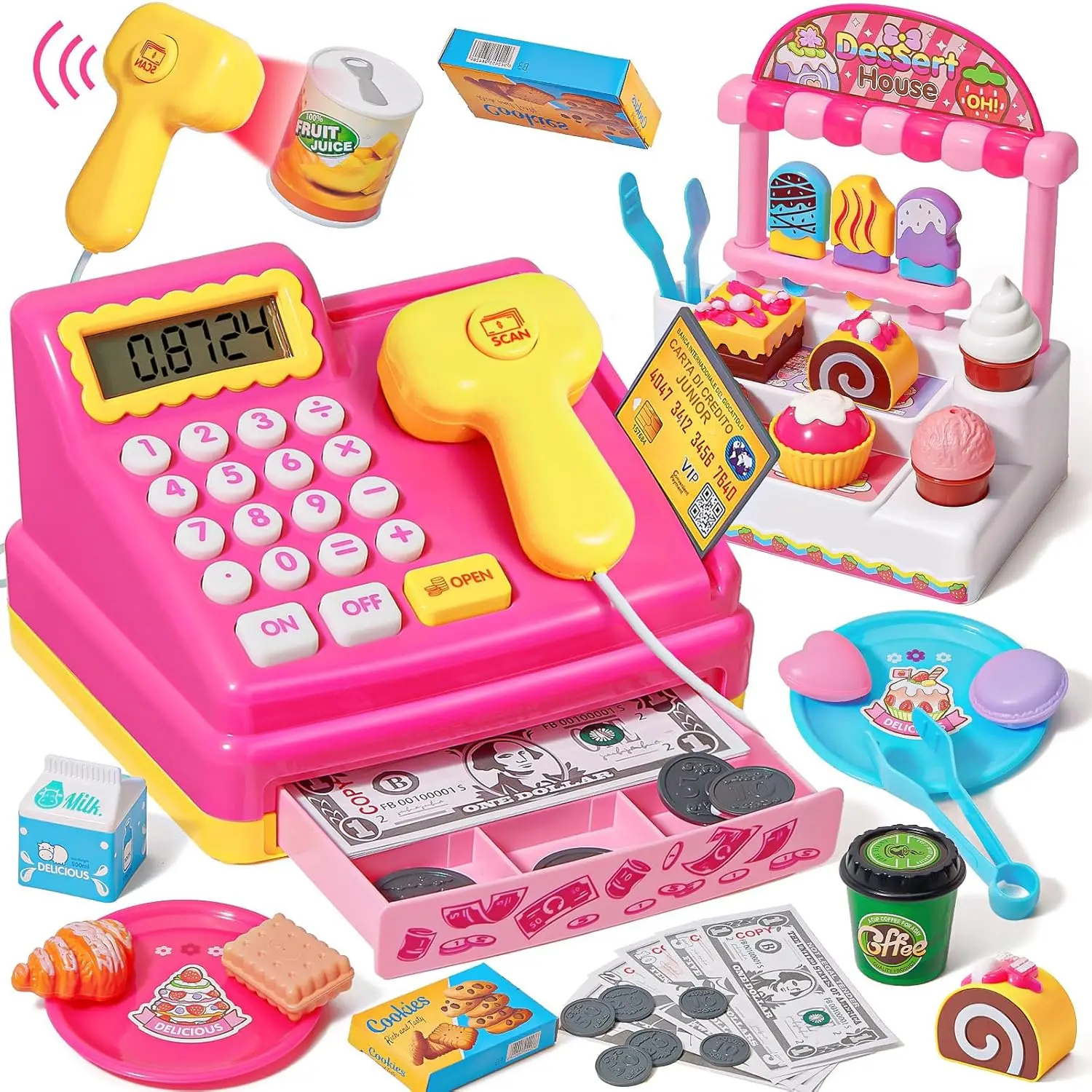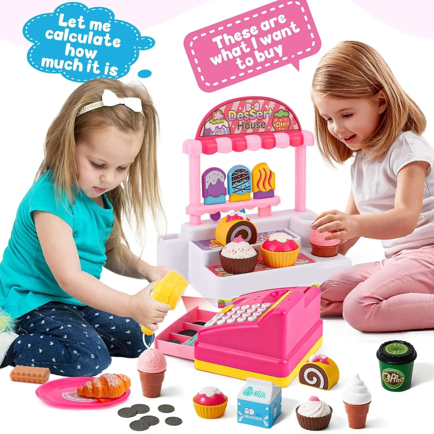 EPT Pretend Play Supermarket Shop Cash Register Toy Ice Cream Shop with Scanner Money Calculator Desserts