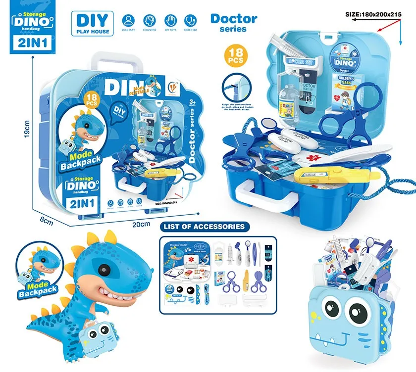 EPT Kids Customize Simulation Tools Makeup Dressing Kit Dinosaur Backpack Toy Pretend Play Toys