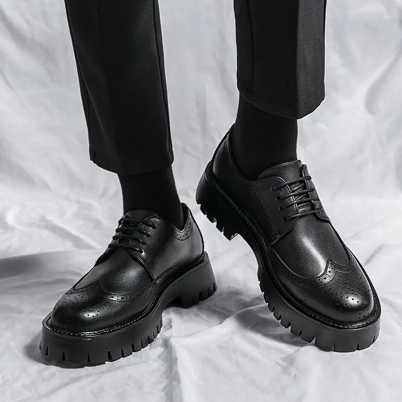 Luxury Leather Men's Loafers Increase Height Platform Shoes Slip-On Solid Breathable Summer Business Pairs