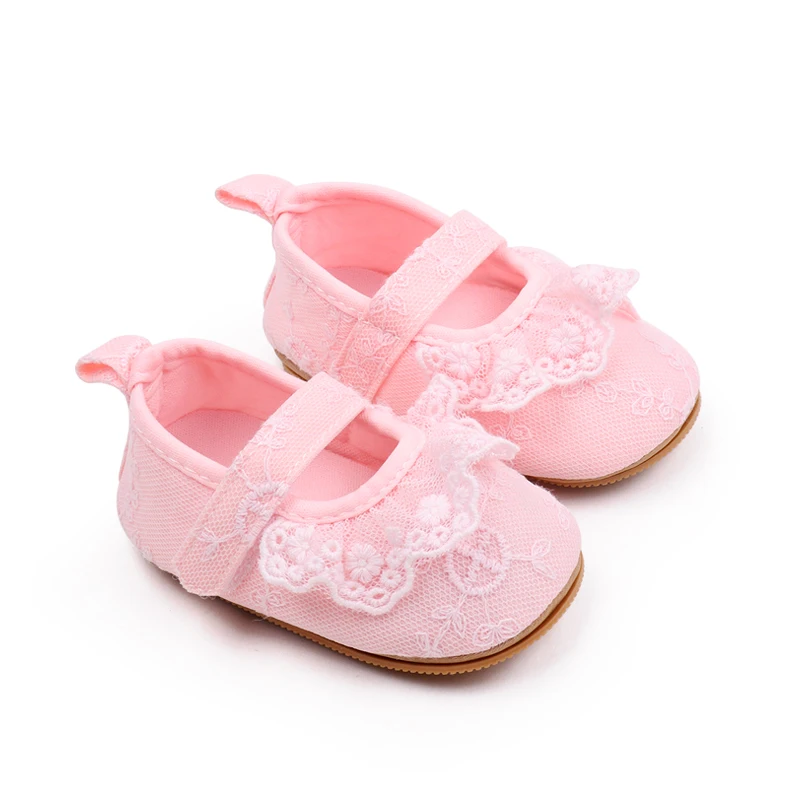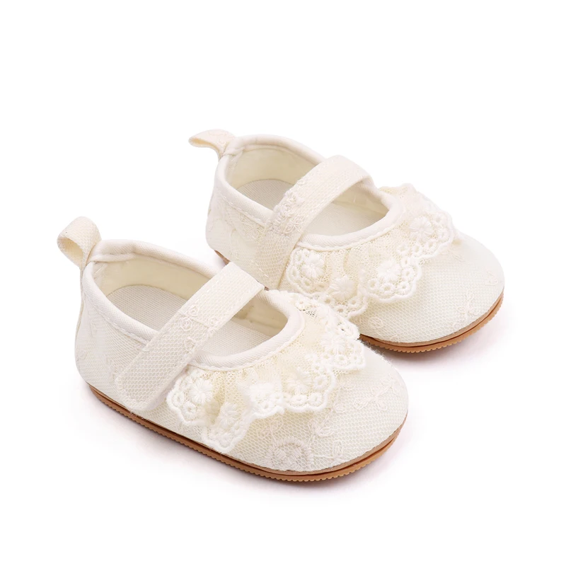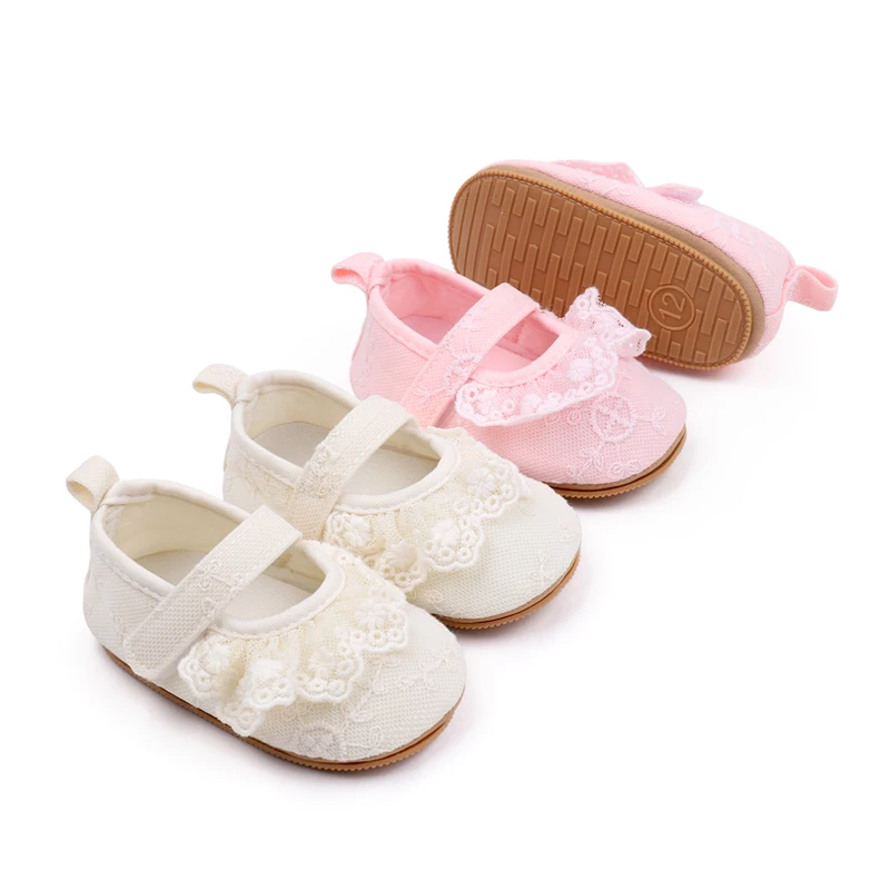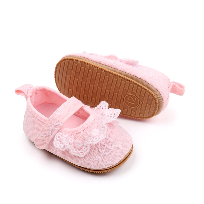 Spring and Autumn Solid Color Lace Lace Soft Soled Non-slip Baby Princess Shoes for Girls