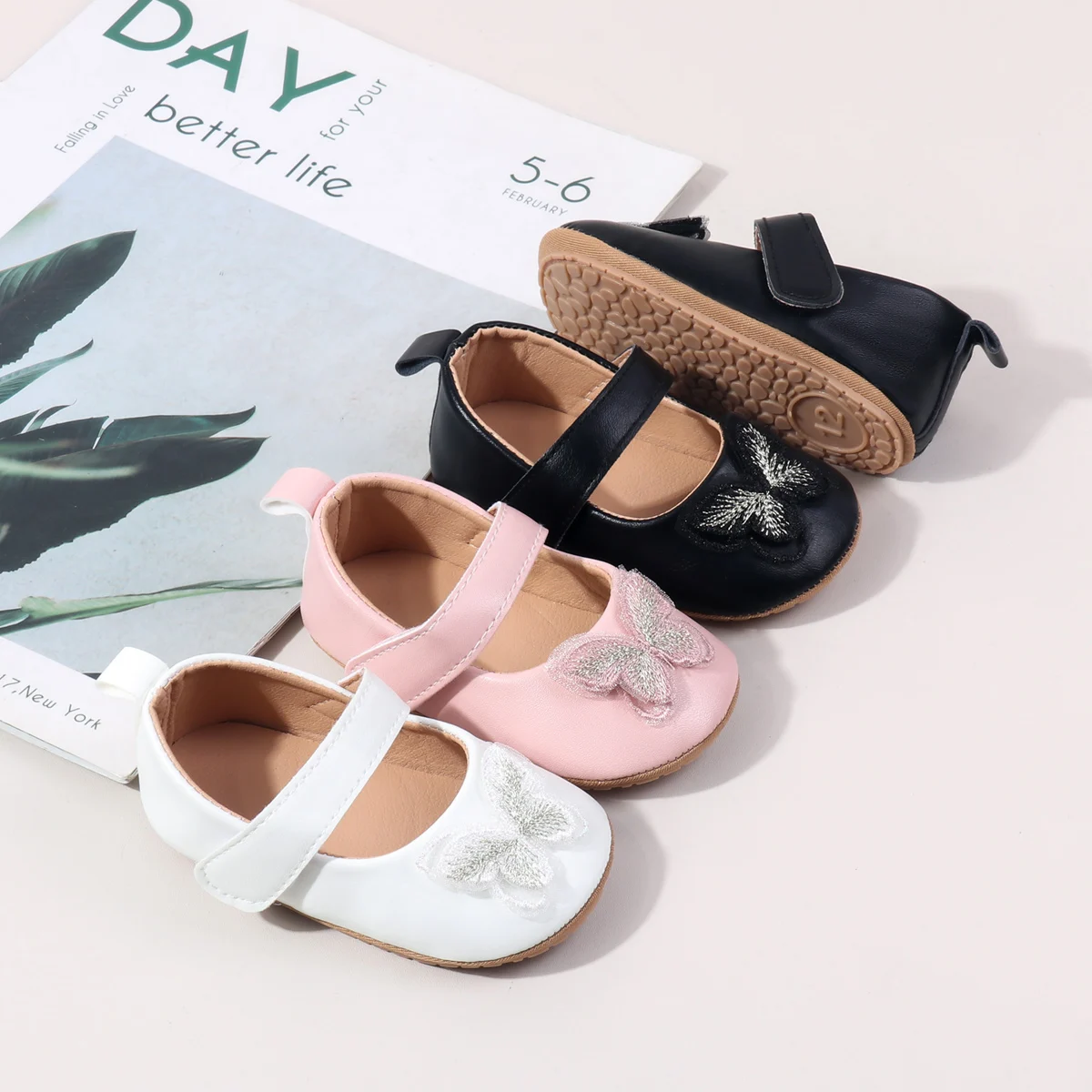 Beautiful butterfly Design Solid Leather Princess Girls Shoes for Babies 0-12 Months