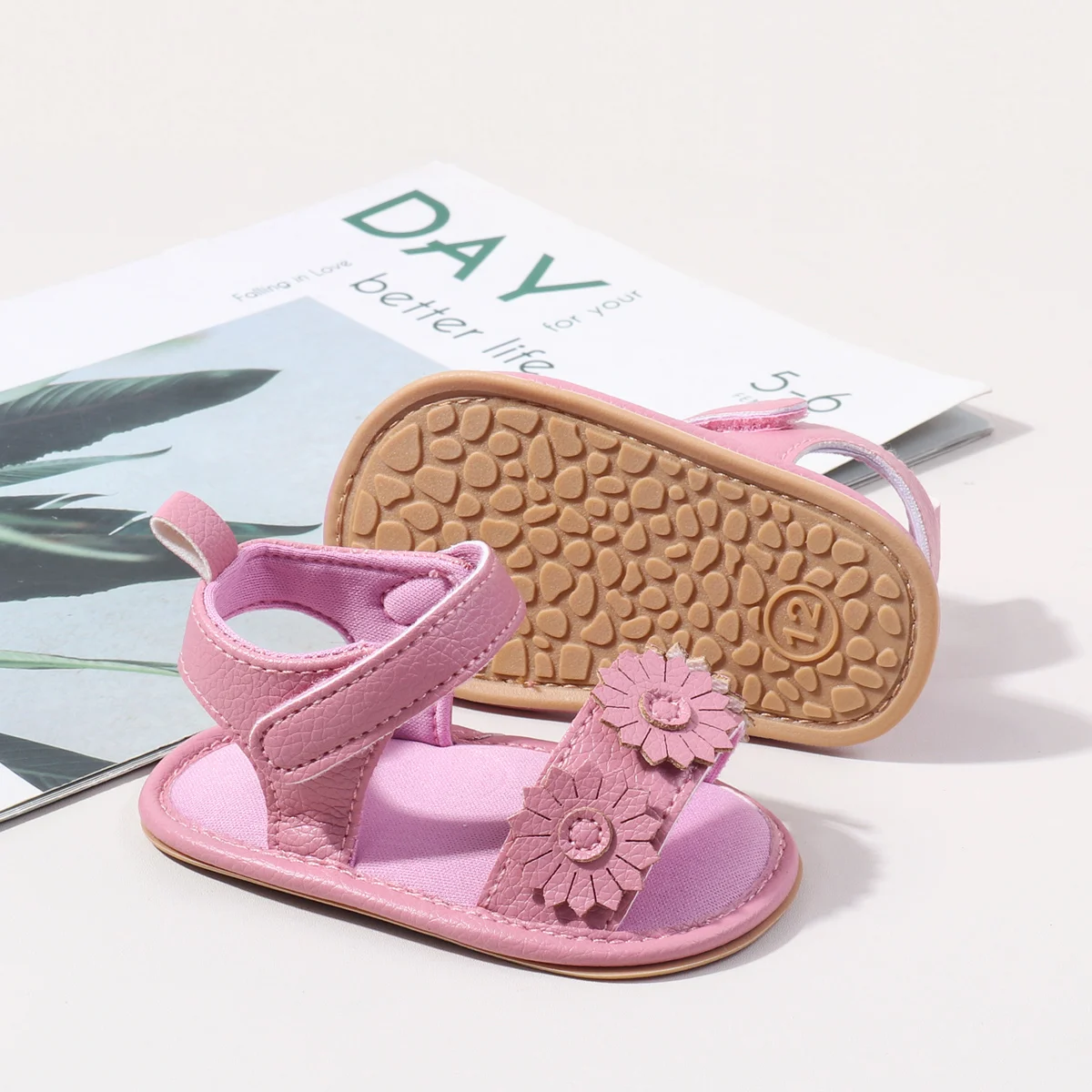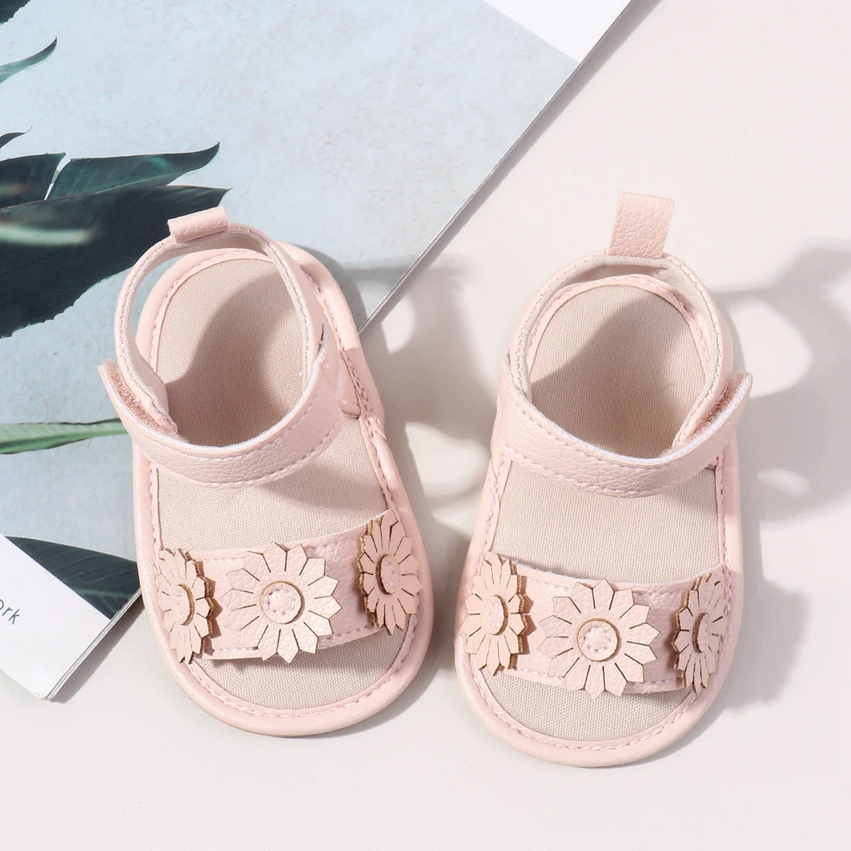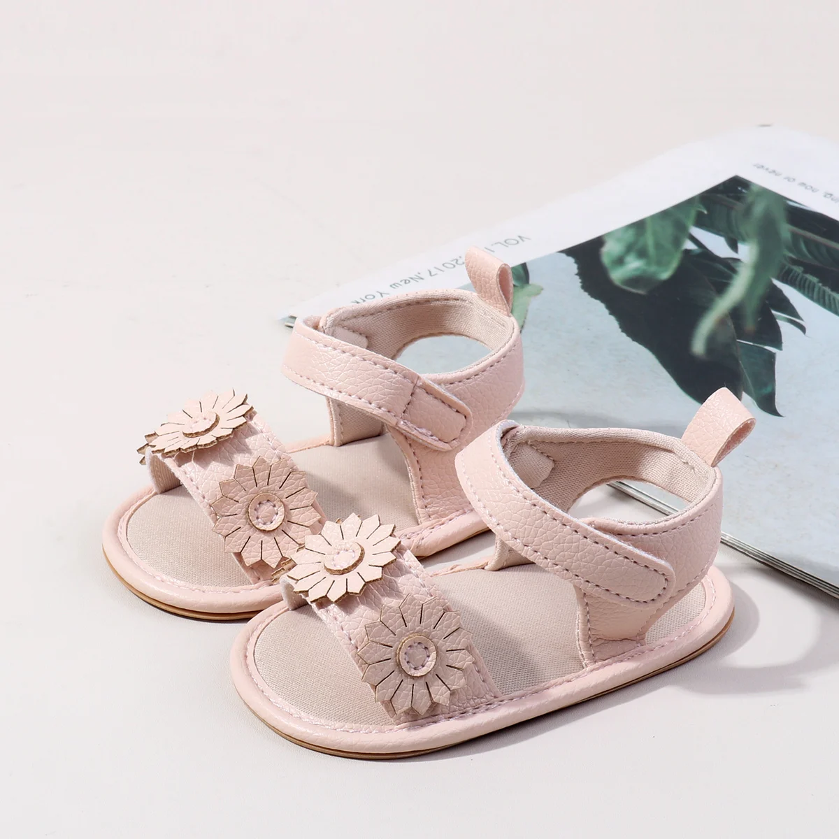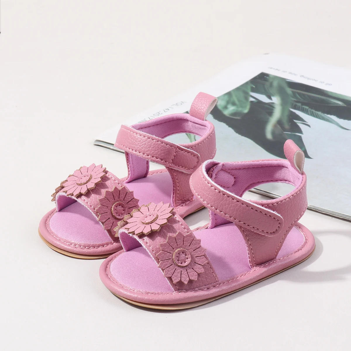 Beautiful Flower Designs Solid Pu Leather Summer Baby Girls Sandals Shoes