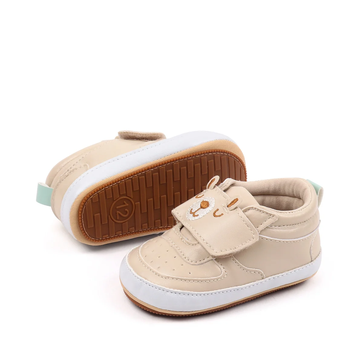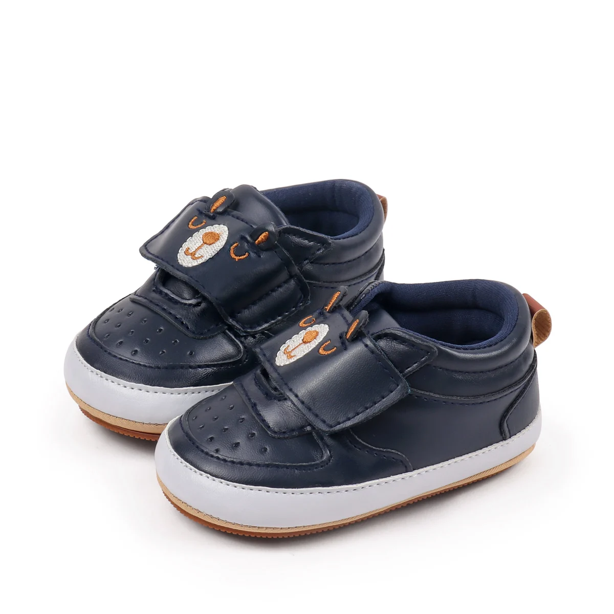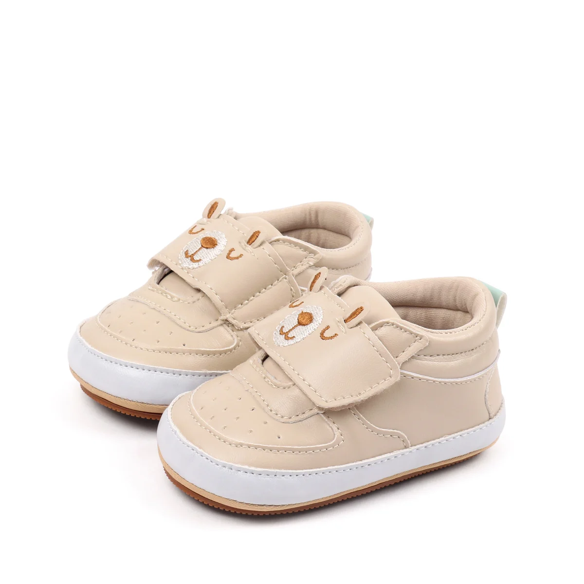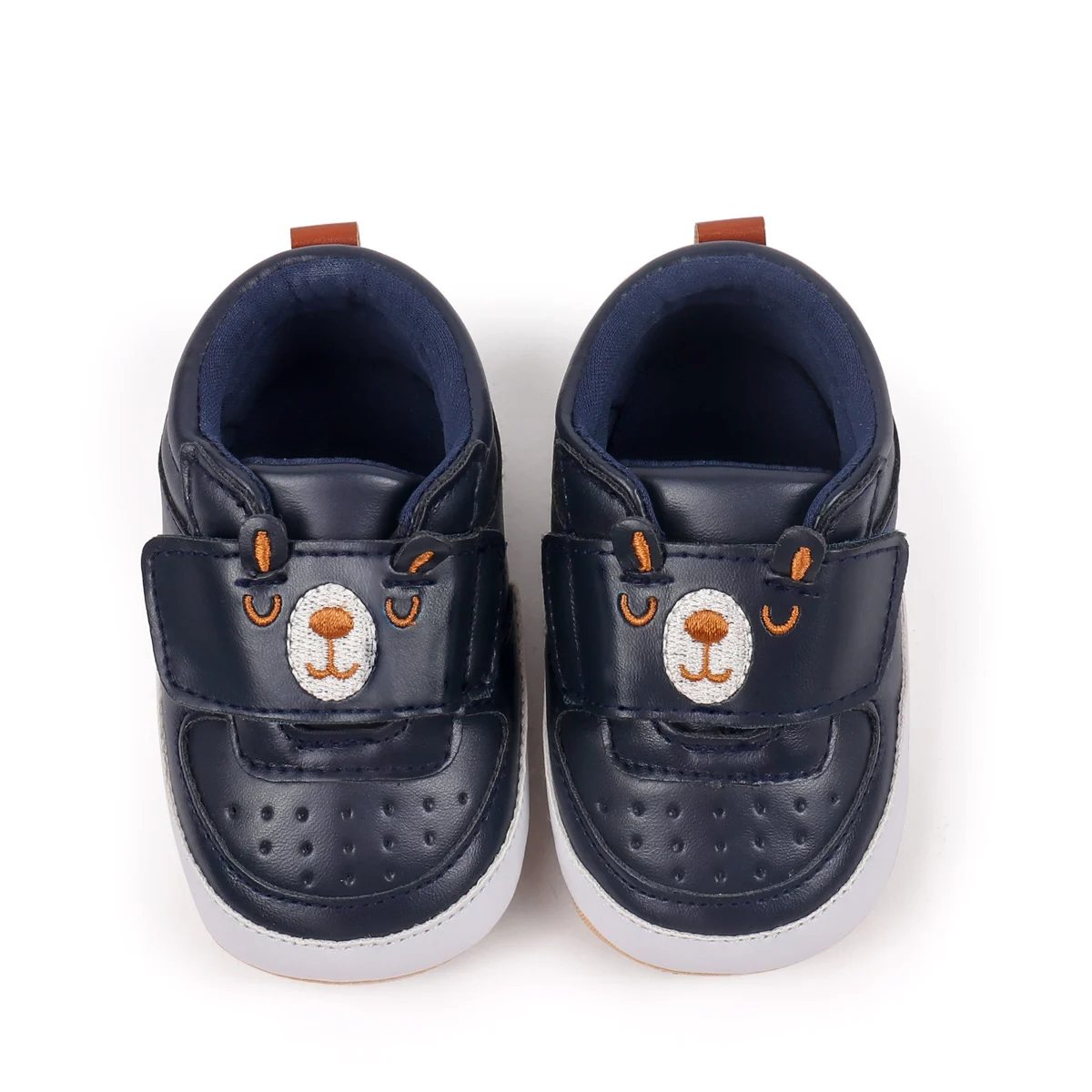 New Arrival High Quality Embroidered Bear Design Hook&loop Prewalker Baby Boys Shoes