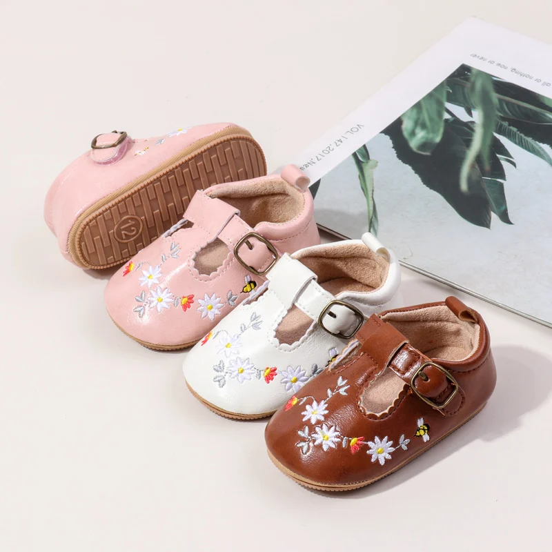 2026 New Design Hollow Breathable Beautiful Flower High Quality Baby Girl Soft PU TPRClassical Princess Shoes