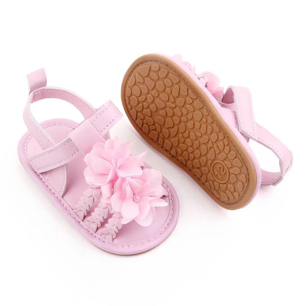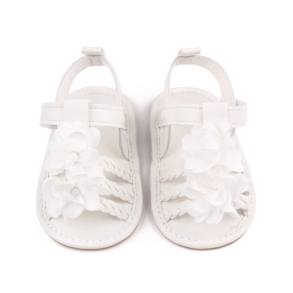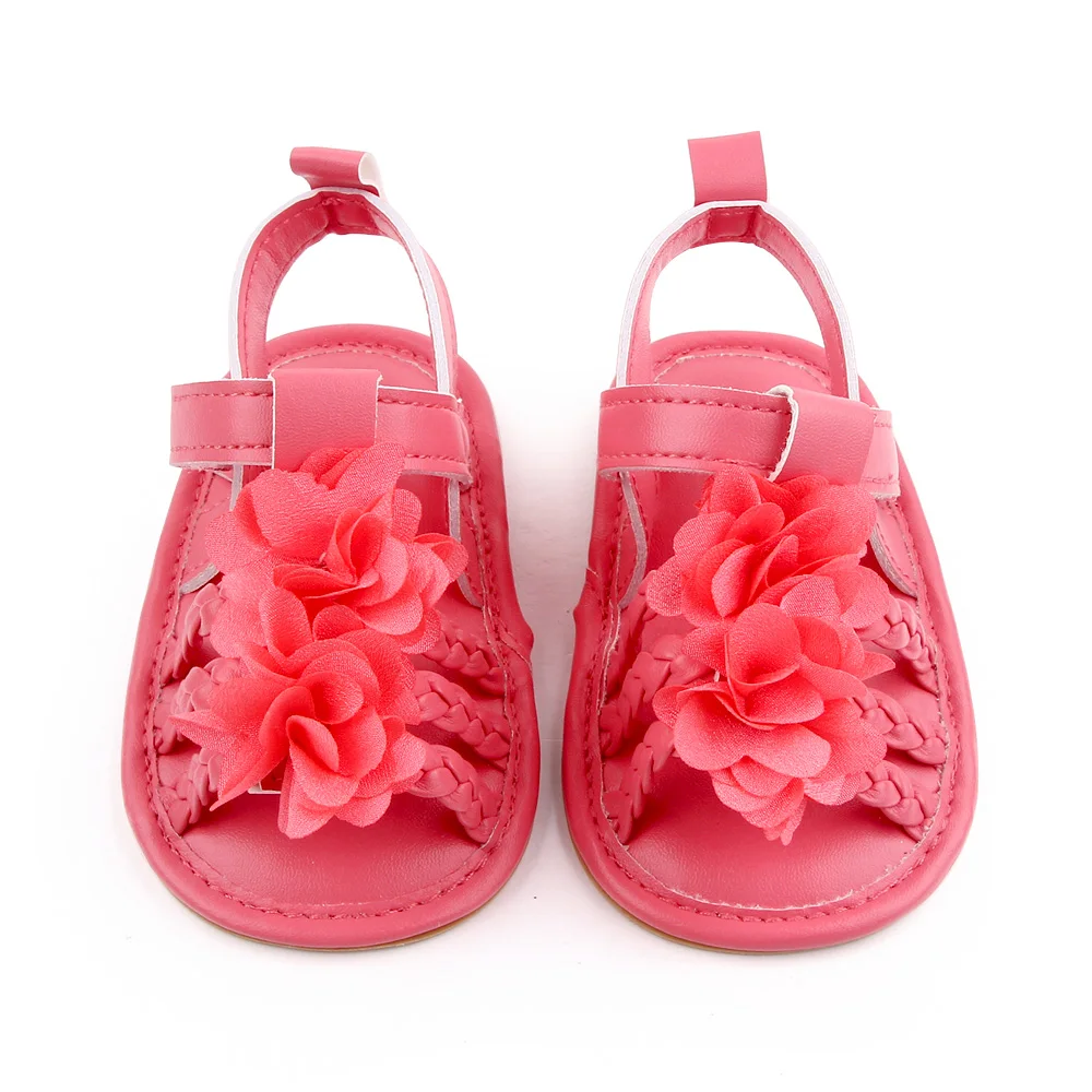 Baby Girls Woven Solid Color Flower Summer Breathable Soft Sole Infants Toddler Sandals