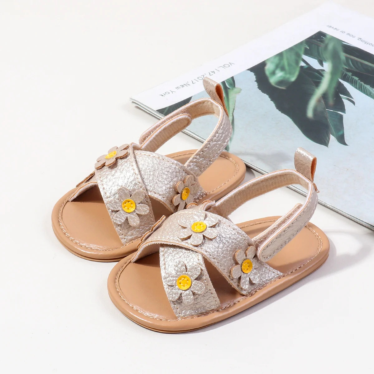 2026 New Fashion Soft PU Baby Girl Shoes with Cute Flower Design Easy Wear Anti-Slip Sole 0-15 Months Newborn Girls Summer Flat