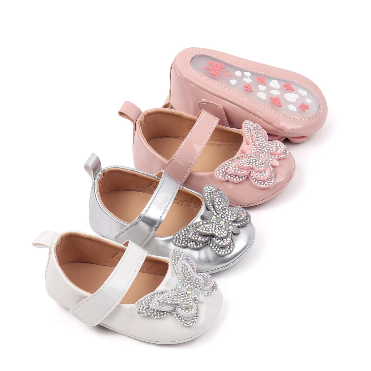 Wholesale New Arrival Beautiful Bling Bow Design PU Leather Baby Infant Newborn Girl Princess Shoes 2026