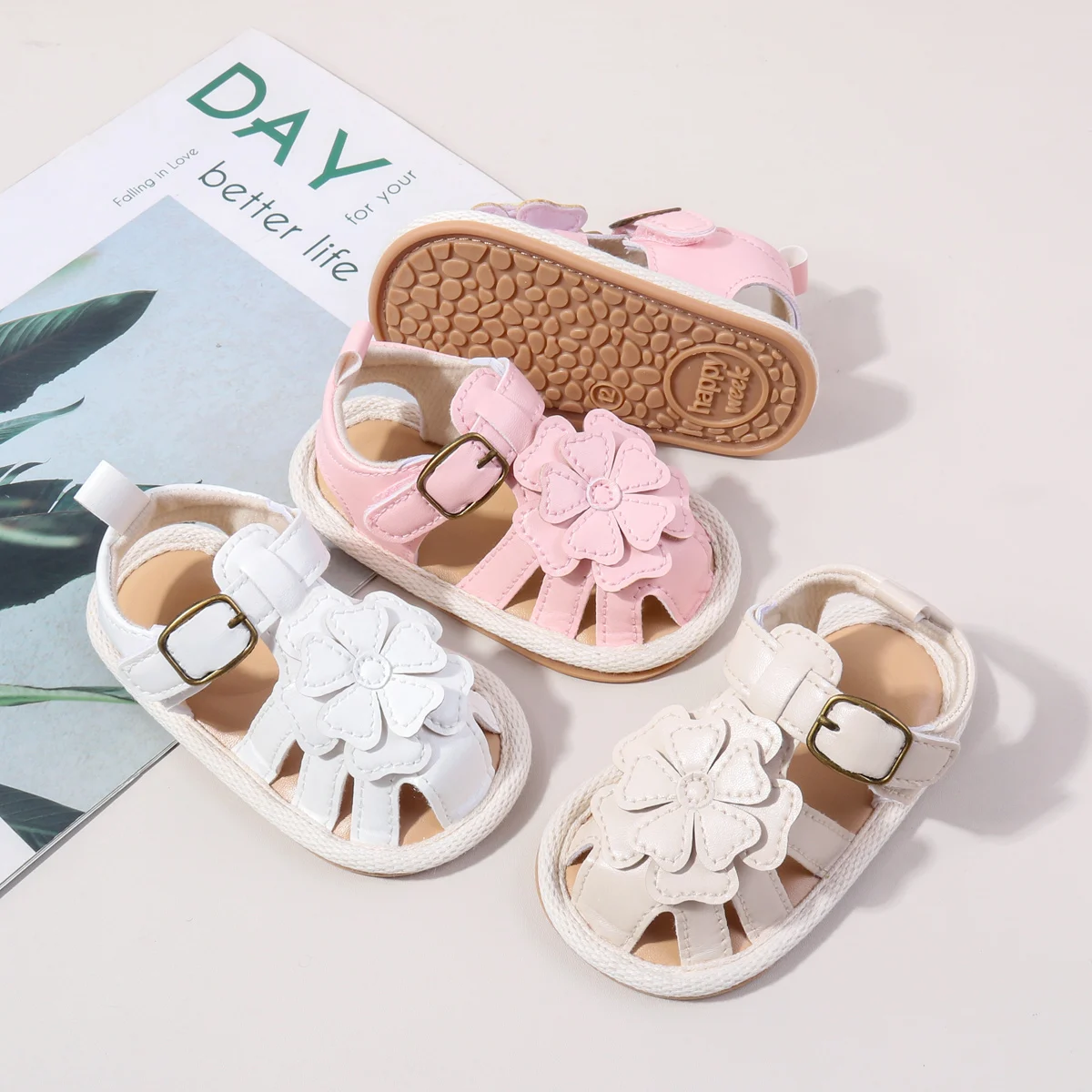 Wholesale Flower Design Anti-slip TPR Outsole Baby Toddler Summer Sandals Shoes for Girls