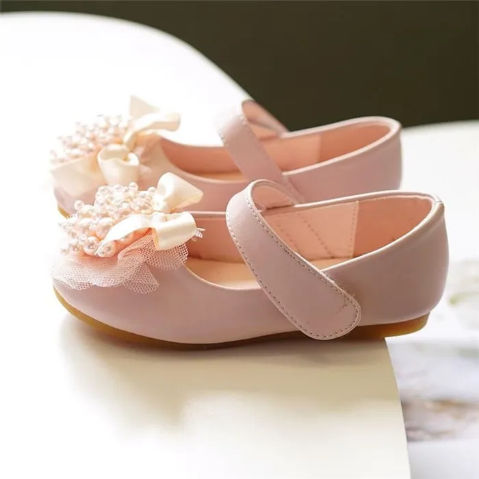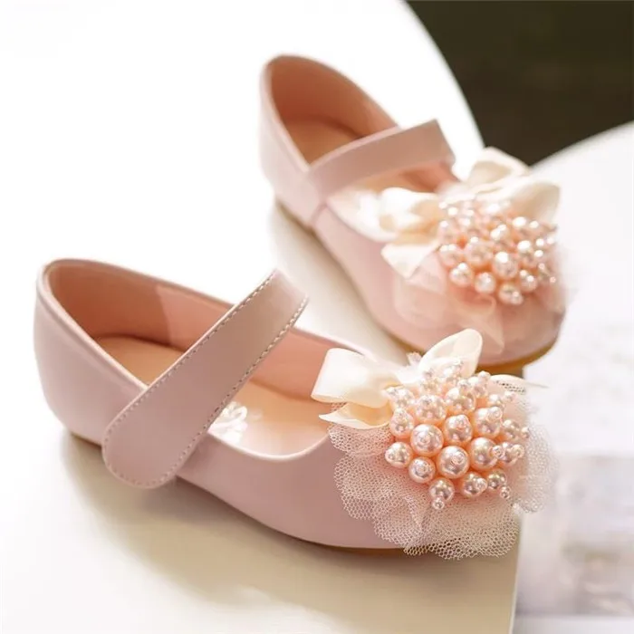 Girls' Princess Mary Jane Flat Dress Shoes with Pearl Flower Custom Logo Children's Casual Leather Flats for Babies
