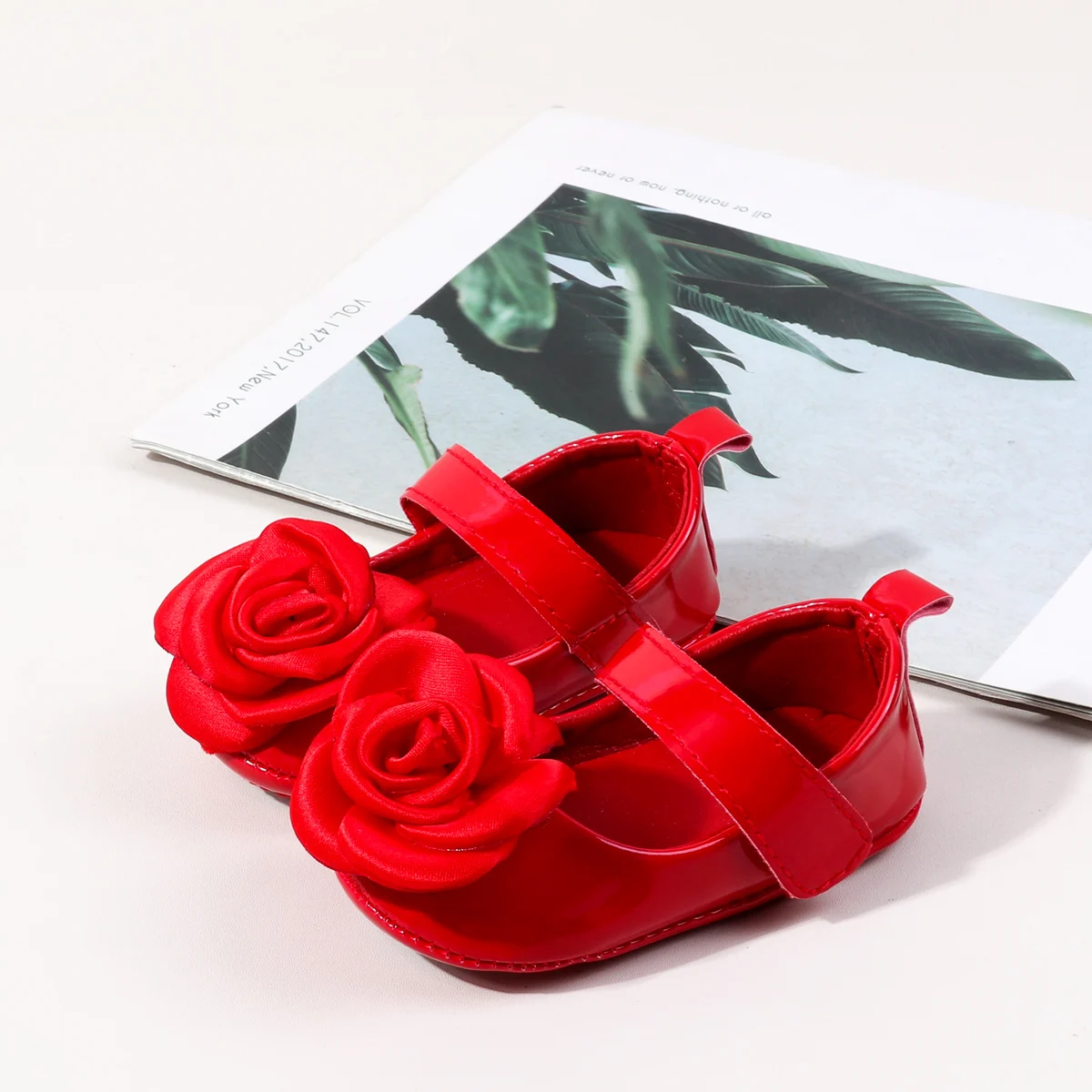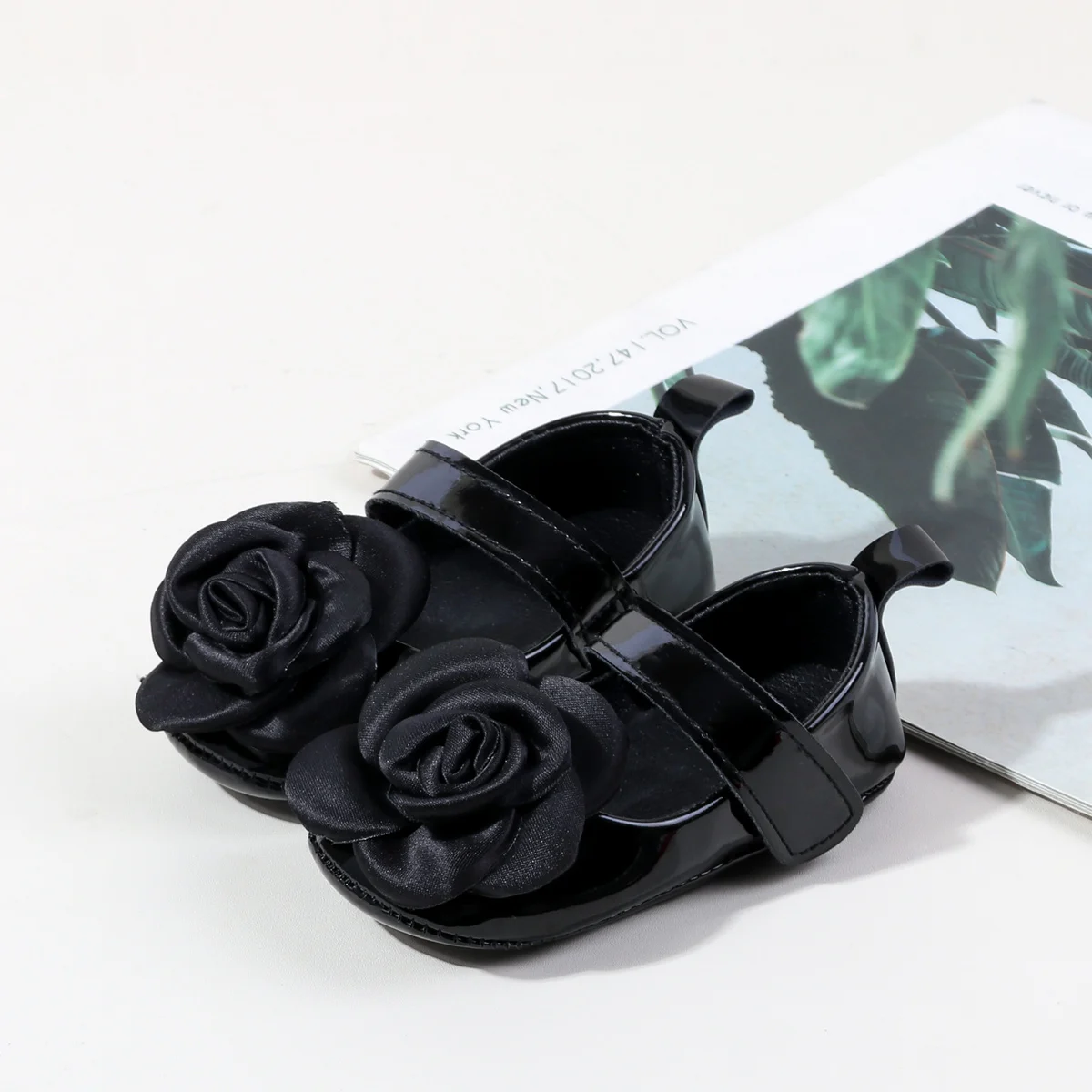 Big Flower Design Solid Pu Leather Princess Baby Newborn Shoes for Girls