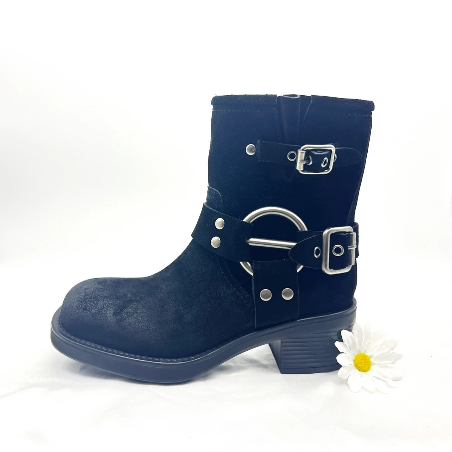 Girls' British Style Mid-Calf for Boots 2026 Autumn Fashionable Chimney Short Artificial Leather Side Zipper Rubber Outsole