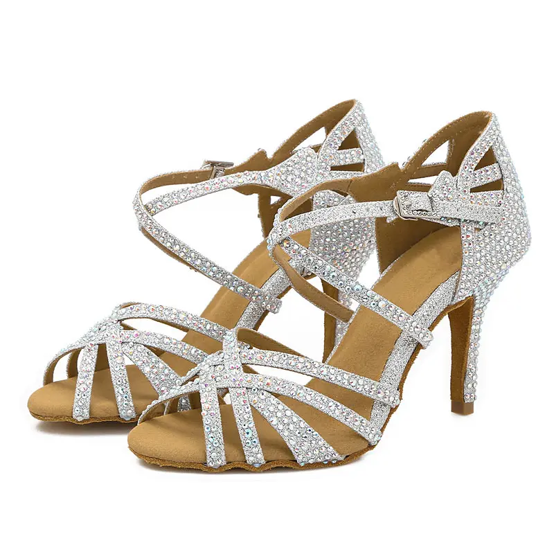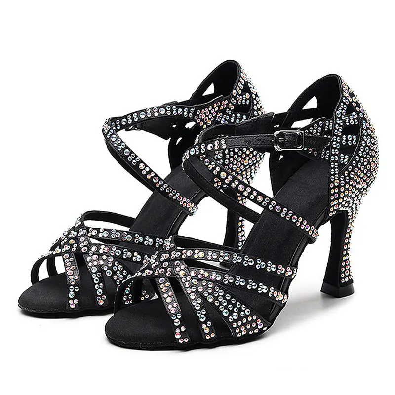 Customized Classic Latin Dance Shoes for Women Rhinestone-Embellished Salsa Shoes