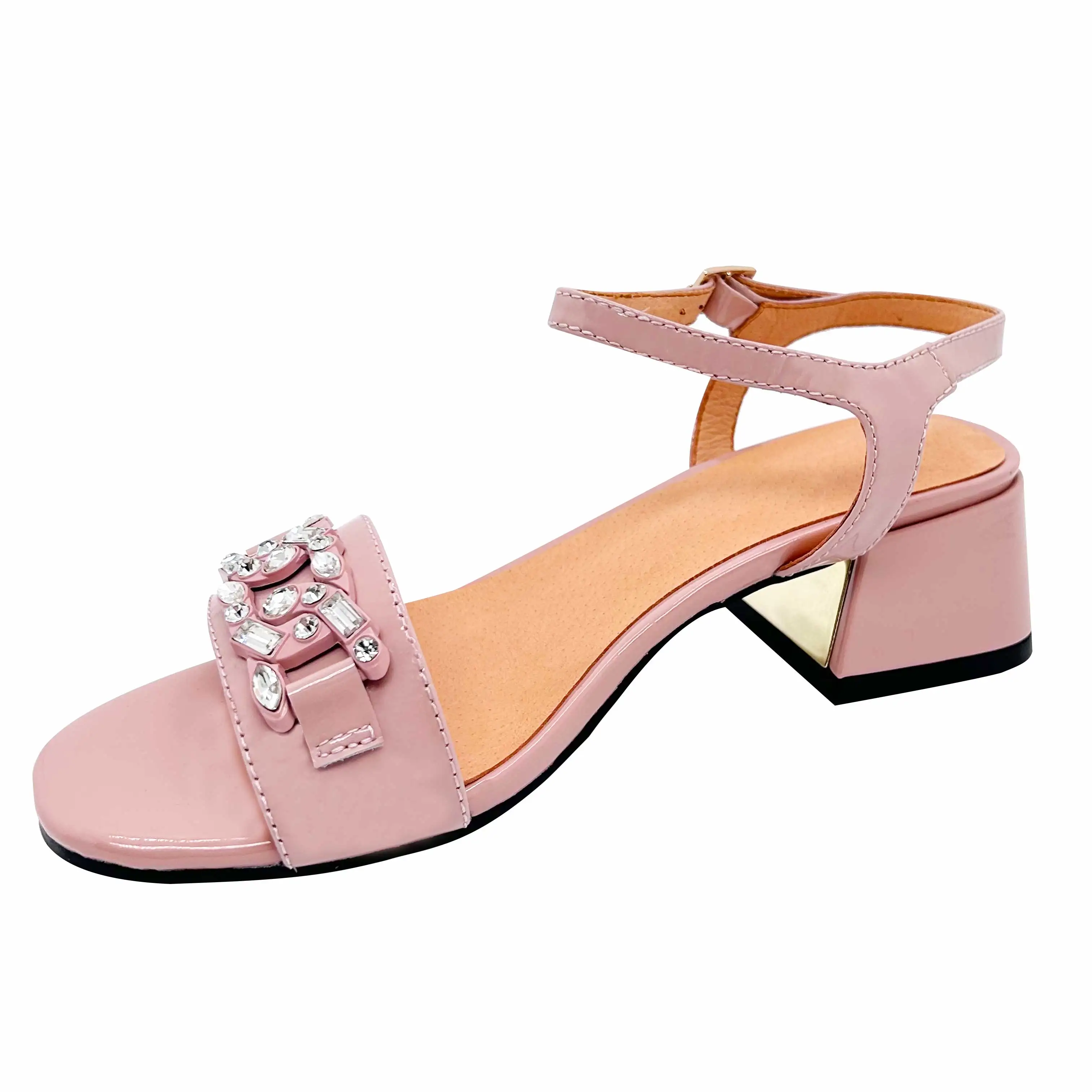 Women's Fashion Trend Summer Peep Toe Light Weight Sandals with Single Strap and Rhinestone