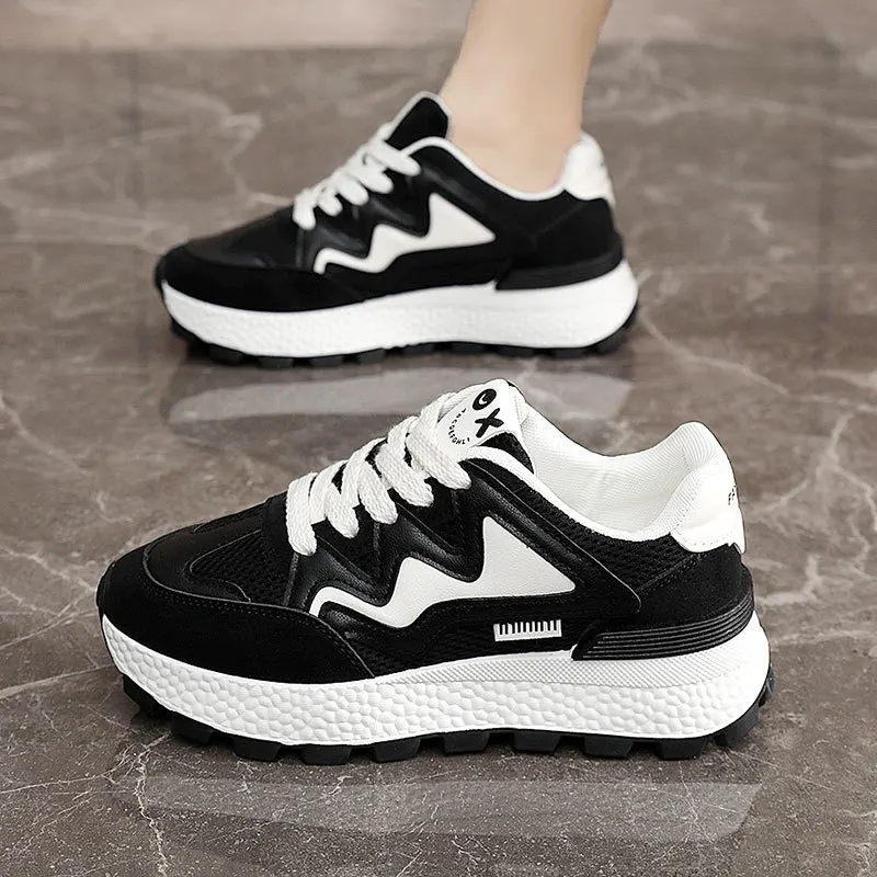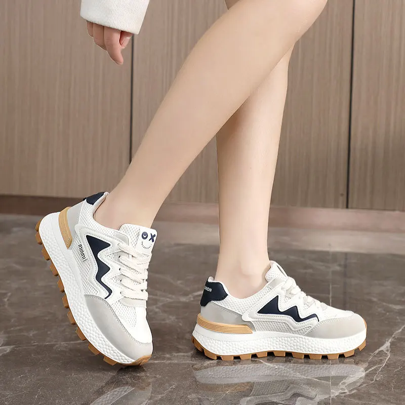 J6117 Wholesale Women's White Casual Sneakers Platform Flats Casual Ladies Walking Style Shoes