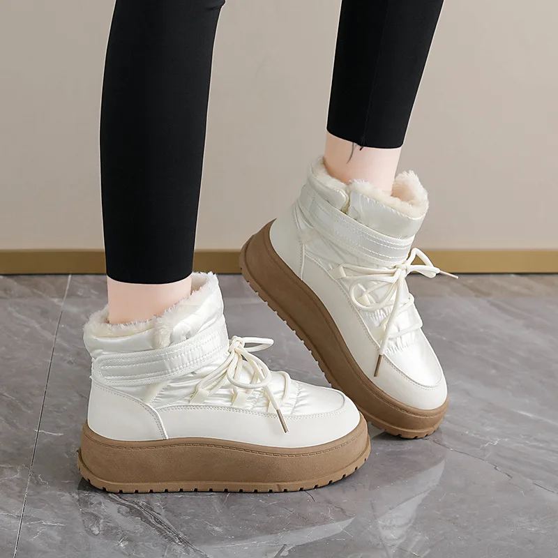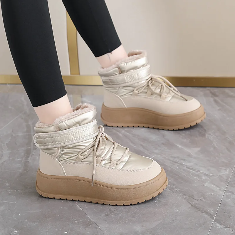2026 Autumn Winter Women's Shoes Waterproof Warm Cloth with Velvet High Top Thick Soled Elevating Snow Boots