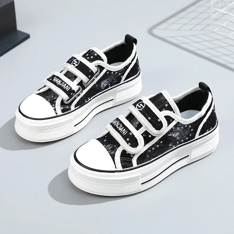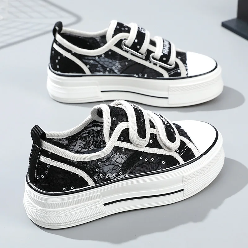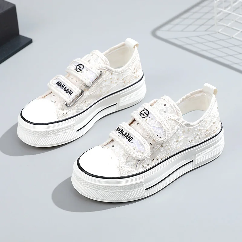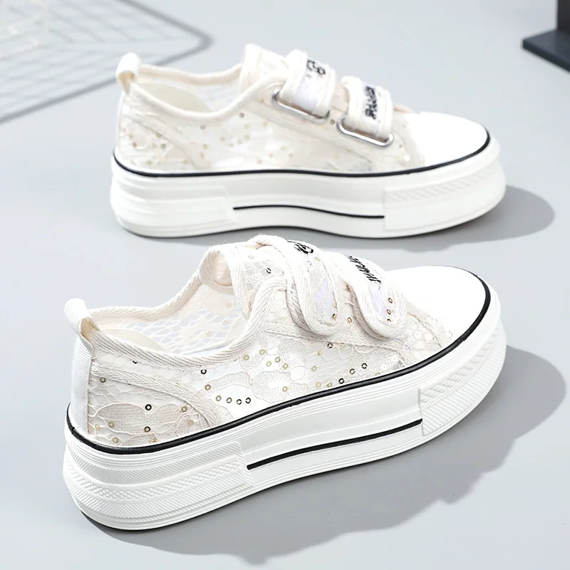 New Mesh Breathable Spring/summer Thick Sole with Increased Adhesive Buckle Versatile Student Board Shoes Canvas Shoes