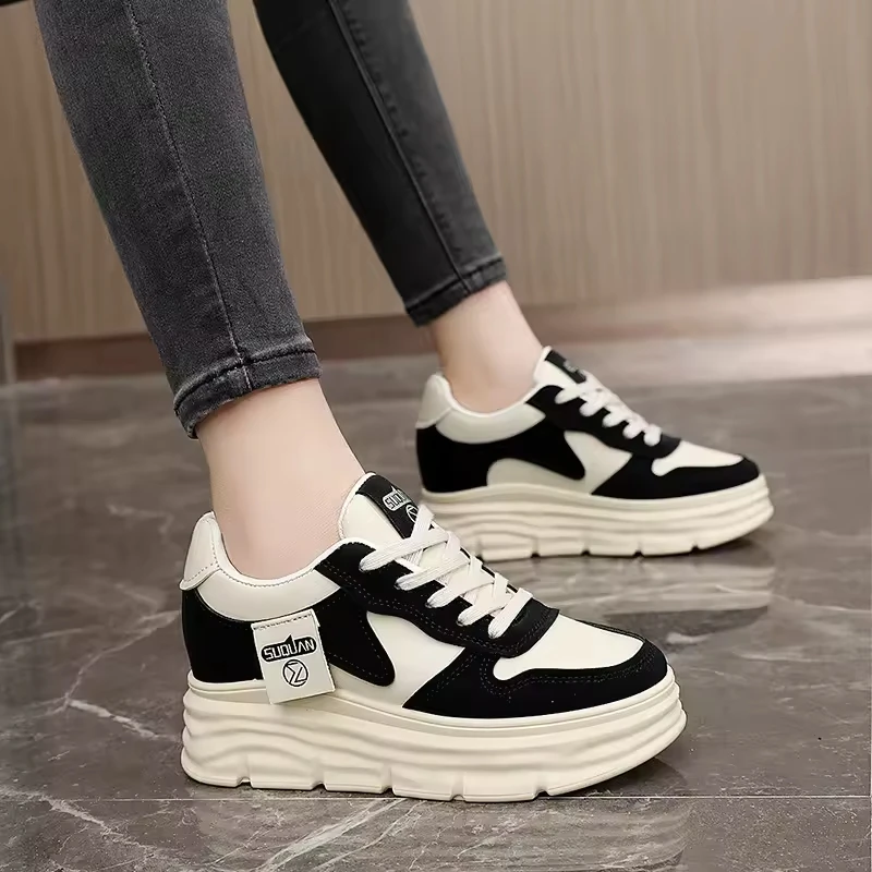 W3681 Top Quality Thick Soles Raised Height Shoes Women Fashionable Flat Walking Style Casual Shoes