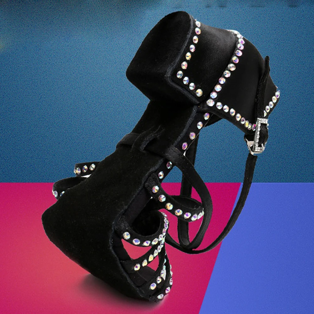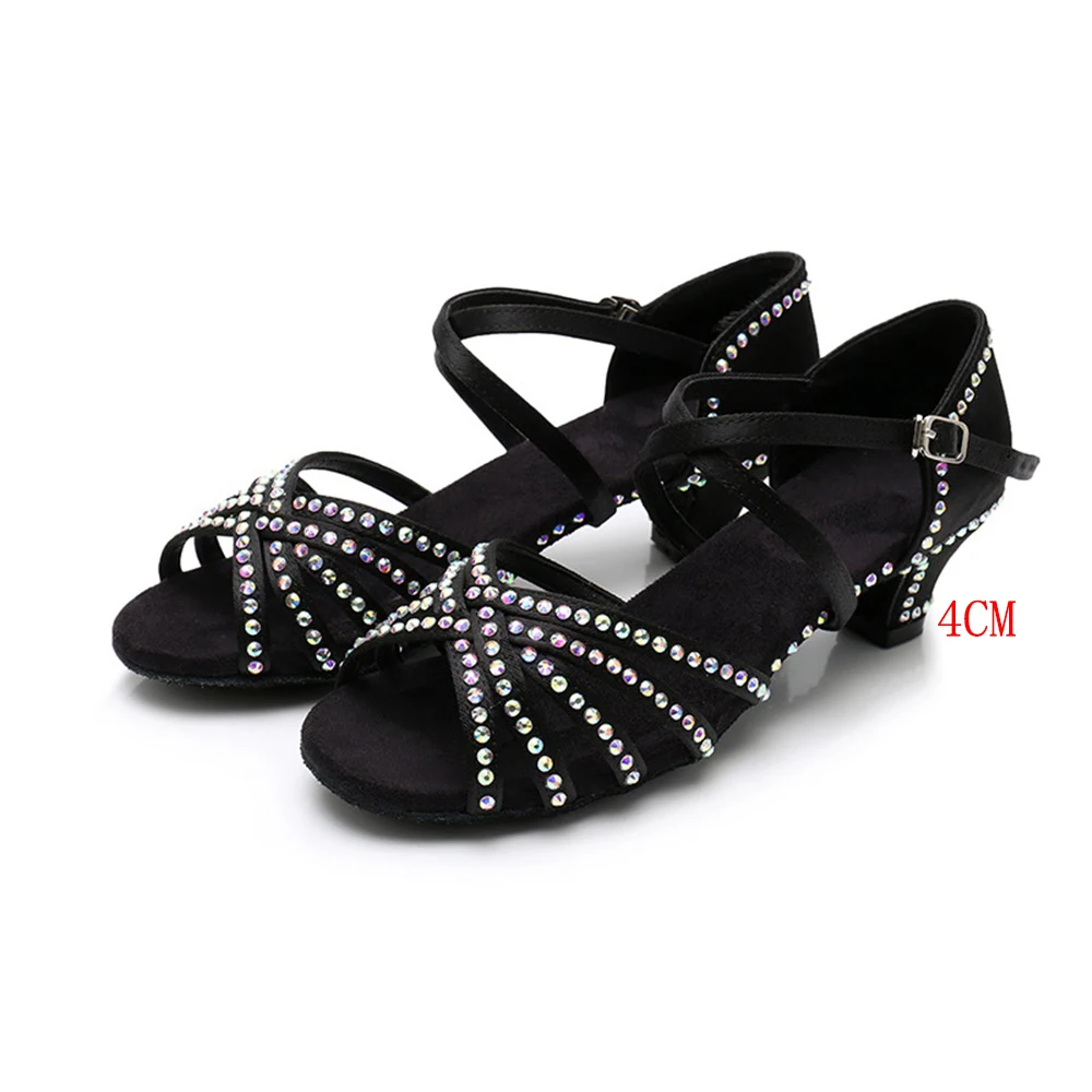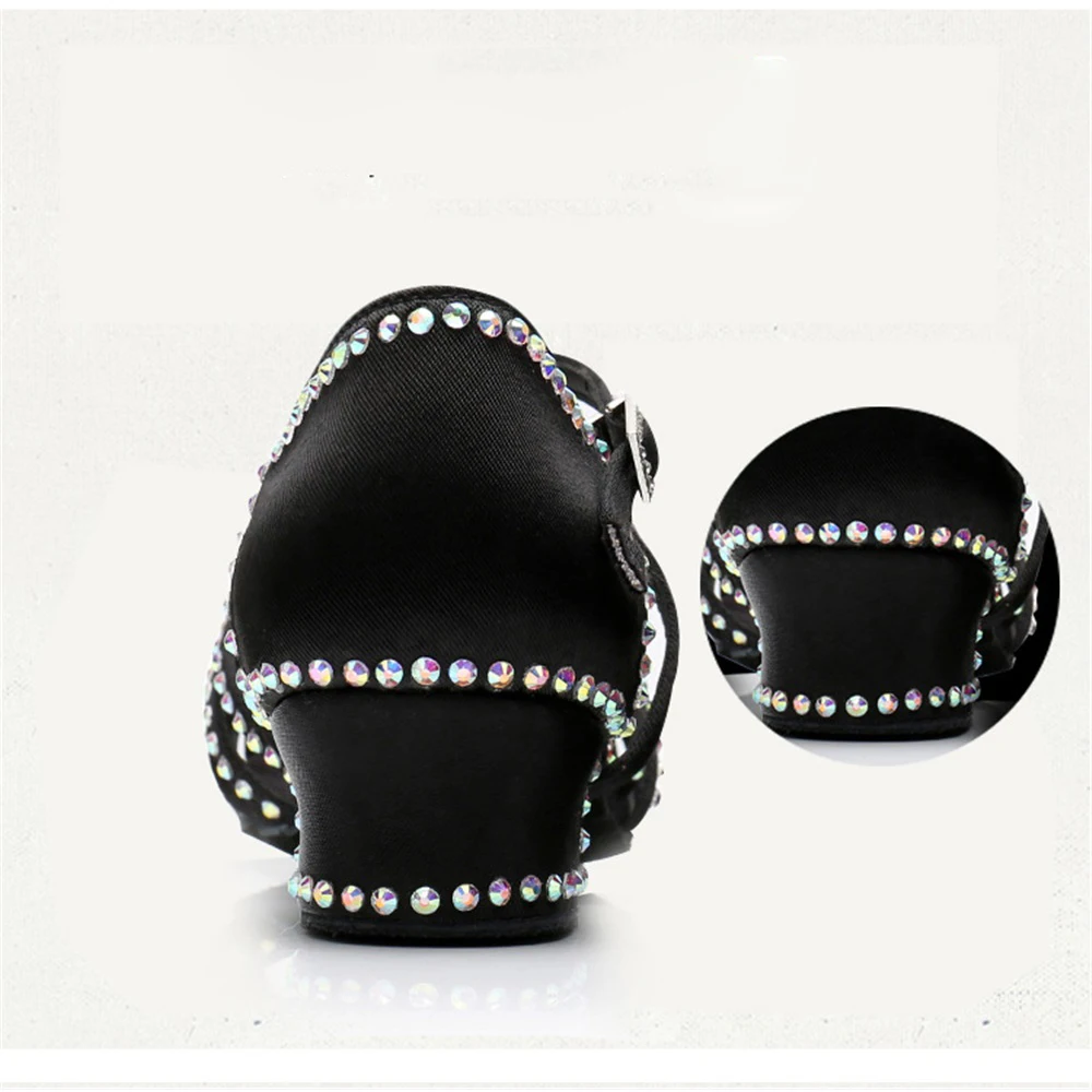 Girls Diamond Latin Dance Shoes Satin Salsa Dance Shoes Low-Heeled Soft-Soled Indoor Performance Dance Shoes