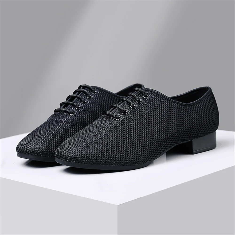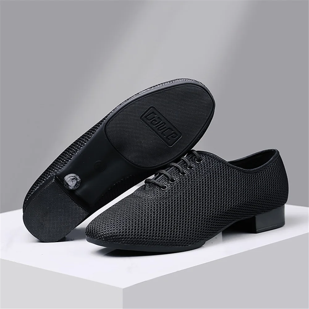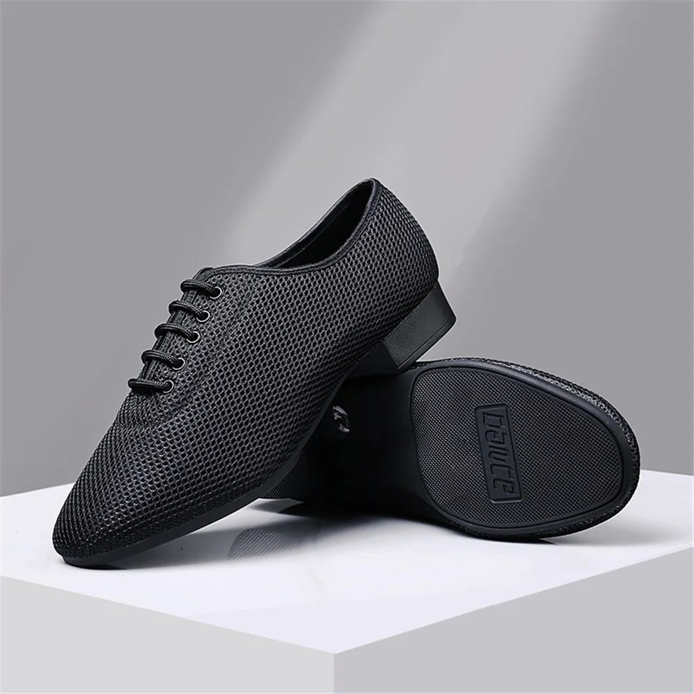 Men's Soft-Soled Square Dance Shoes Comfortable Breathable Mesh Surface Modern Dance Shoes Low-Heeled Tango Training Shoes