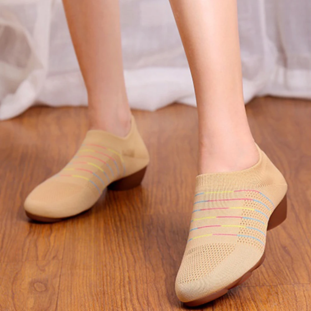 Women's Soft-Soled Belly Dance Shoes Low Heels Breathable Folk Dance Performance Shoes