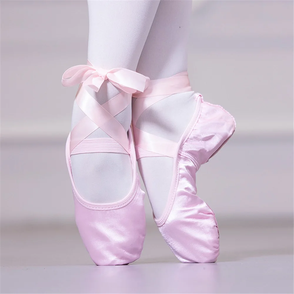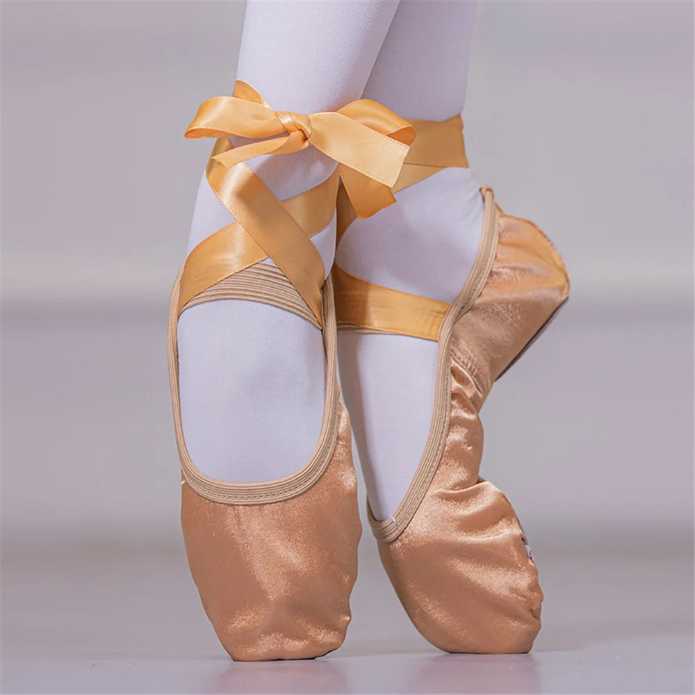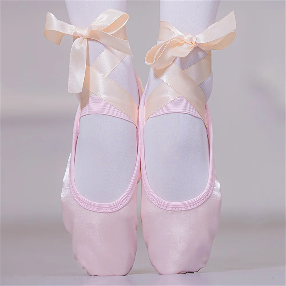 Girls' Ribbon Ballet Dance Shoes Soft-soled Satin Gymnastics Dance Shoes Stage Performance Shoes