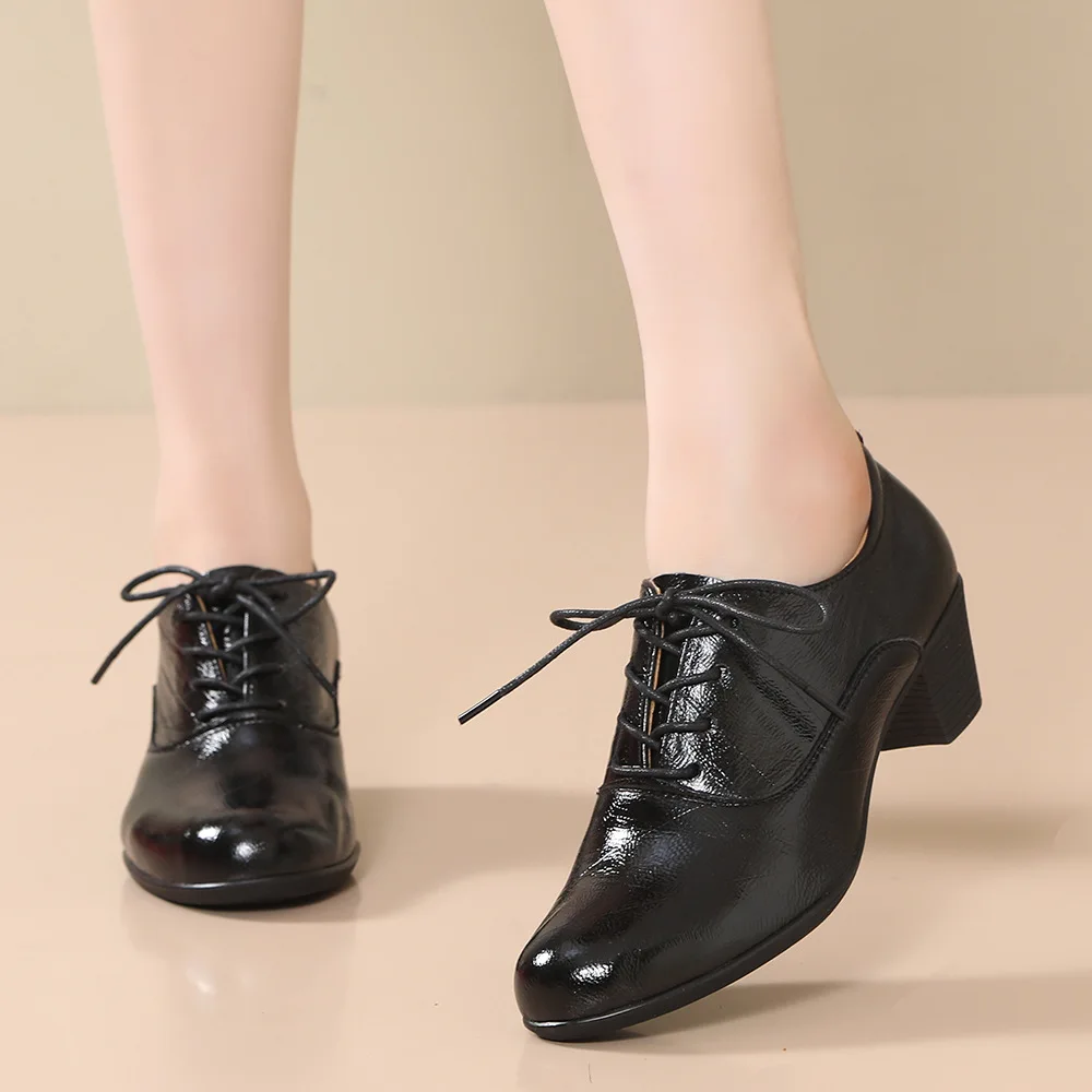 Women's Ballroom Dancing Shoes Soft Soles Cowhide Outsole Comfortable Square Modern Dance Shoes