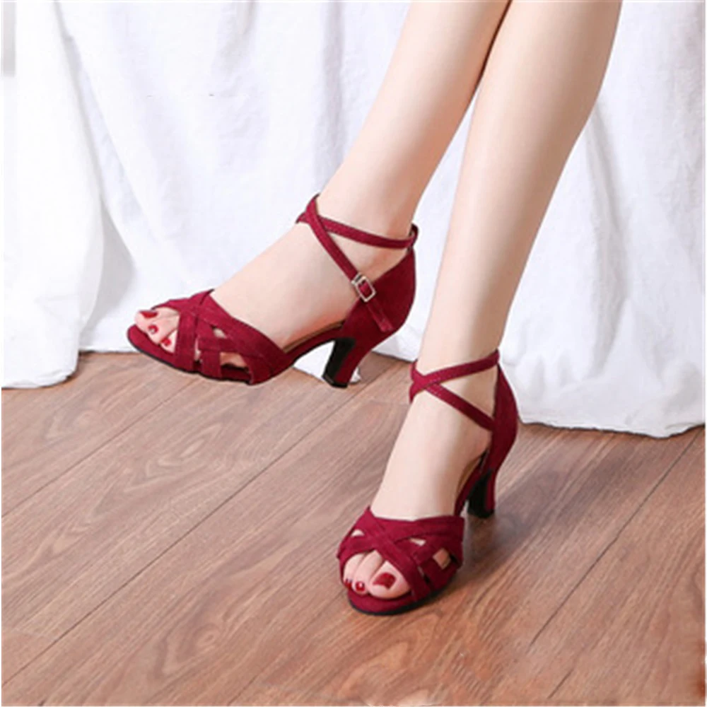 Ladies Suede Latin Dance Shoes Soft Soles Salsa Dance Training Shoes Adult Fashion Indoor Party Wedding Sandals