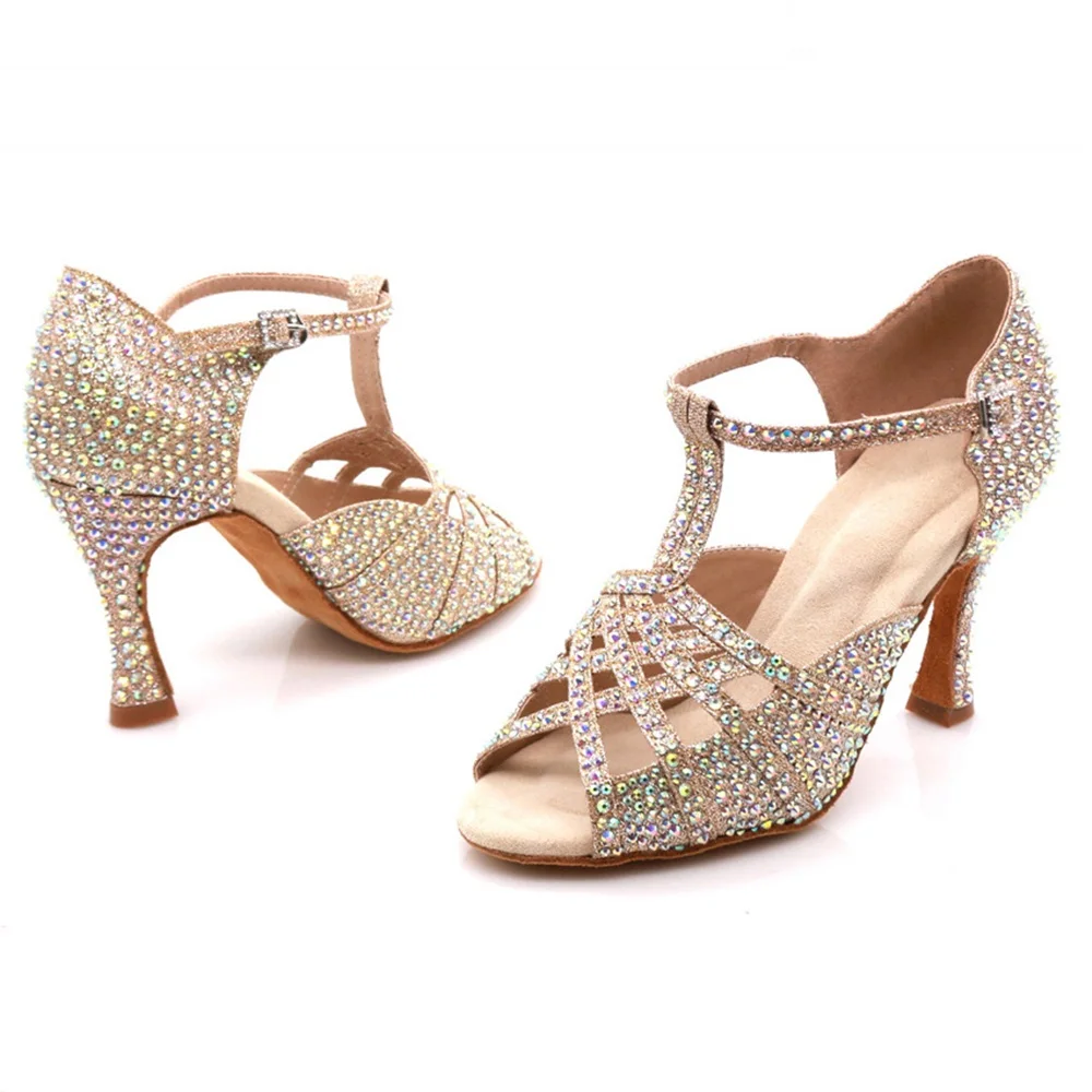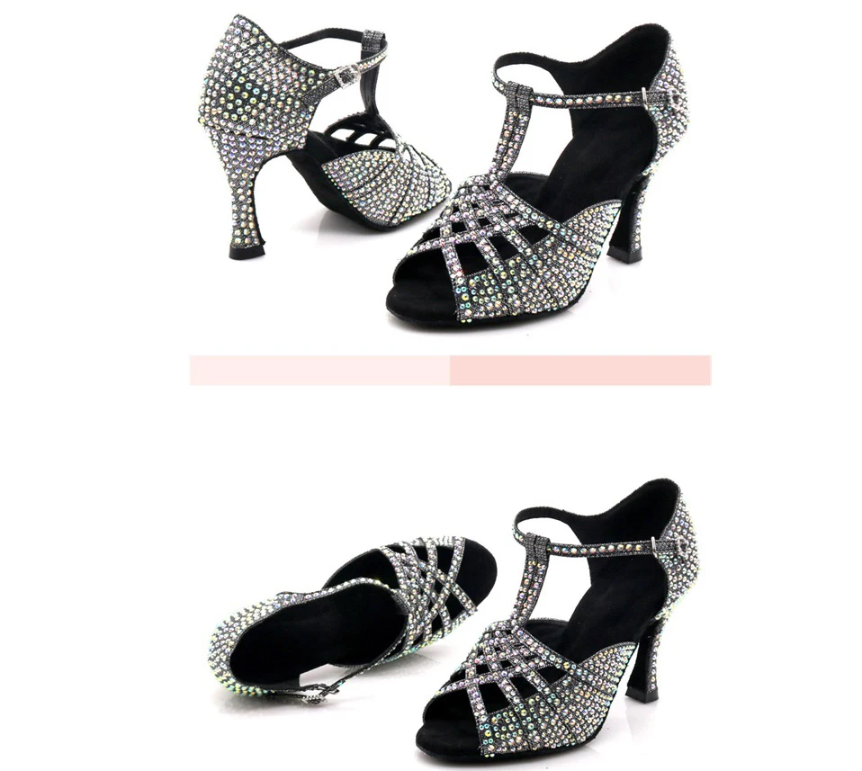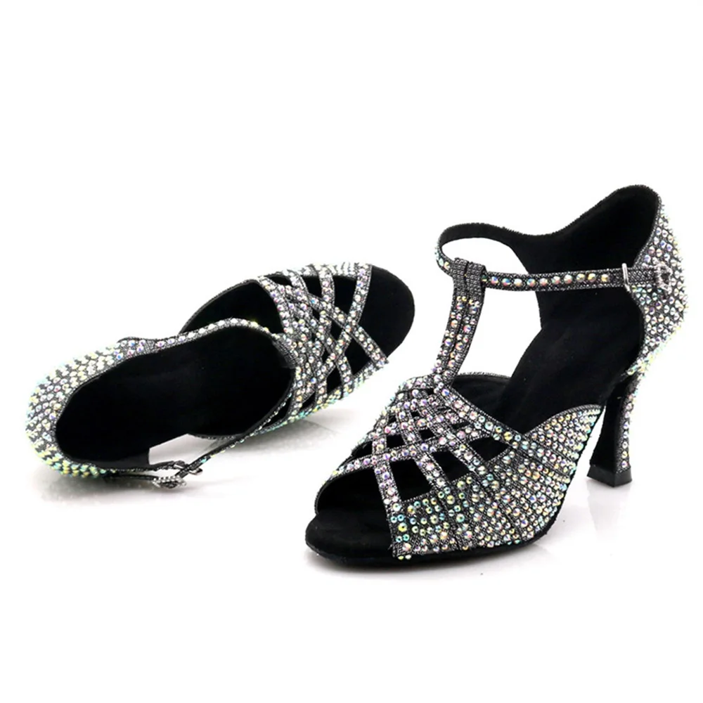 Women's Rhinestone Latin Dance Shoes Stable Stilettos Ballroom Dancing Shoes Soft-soled Party Wedding Dancing Shoes
