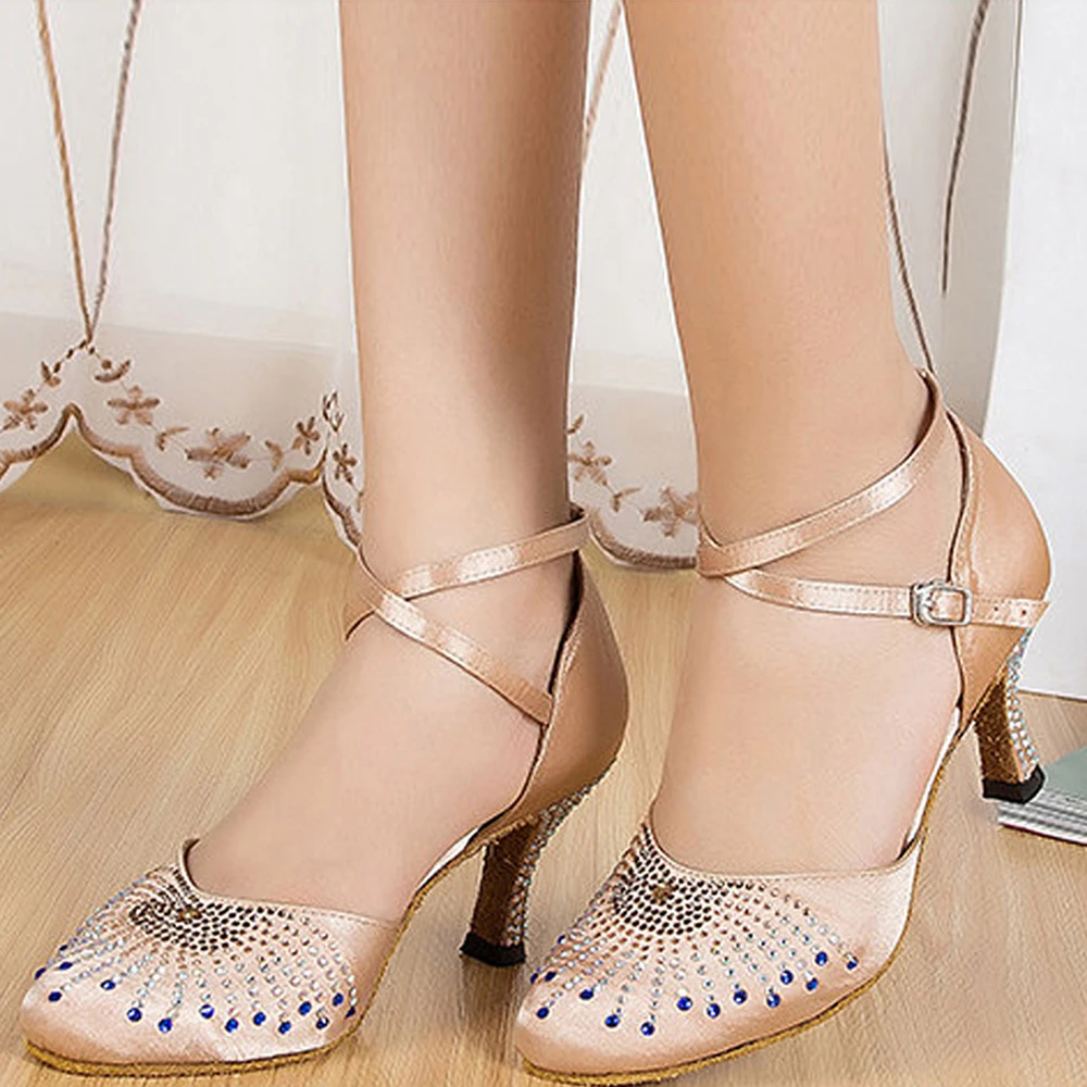 Women's Satin Salsa Dance Shoes Adult Indoor Stage Latin Dance Shoes Fashion Tango Dancing Shoes