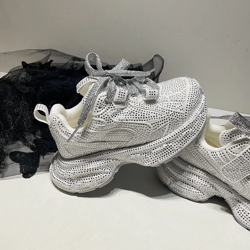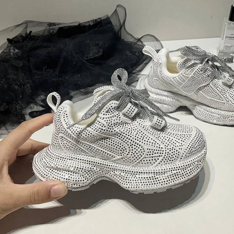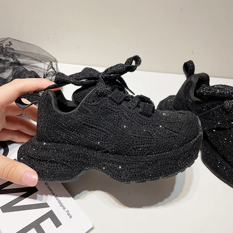 Girls' Low-top Sneakers for Older Children White Shoes Autumn New Style Korean Style Rhinestones Trendy Versatile Kids' Sports