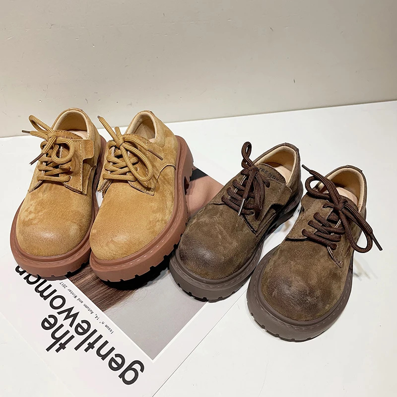 Girls' British Style Mid-Calf for Boots 2026 Autumn Fashionable Chimney Short Artificial Leather Side Zipper Rubber Outsole