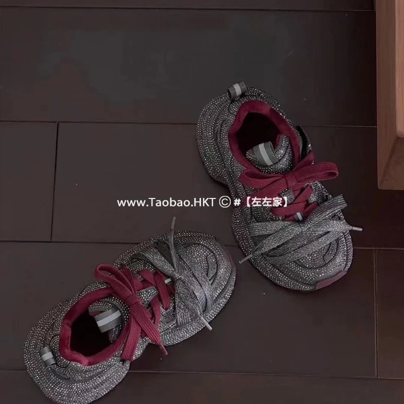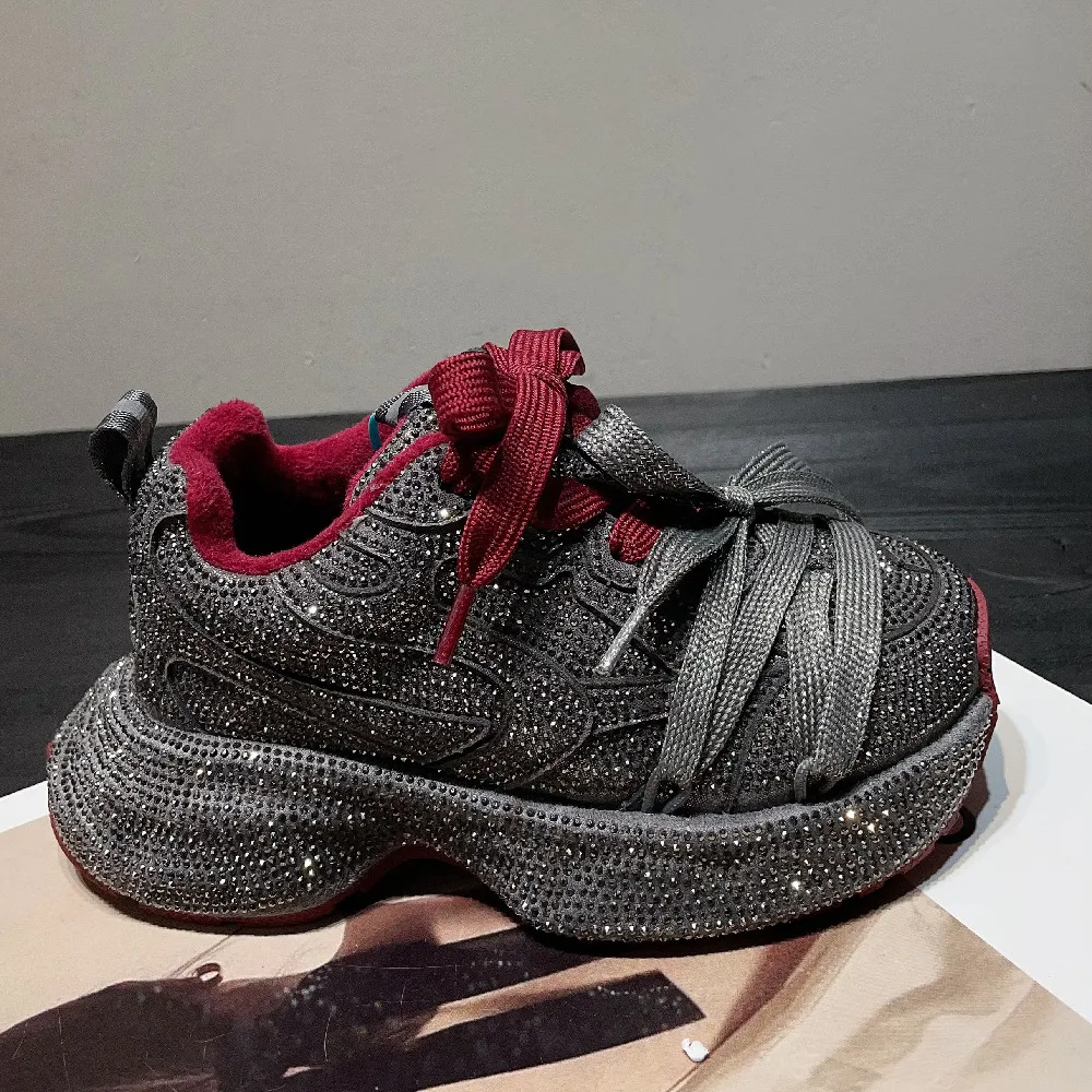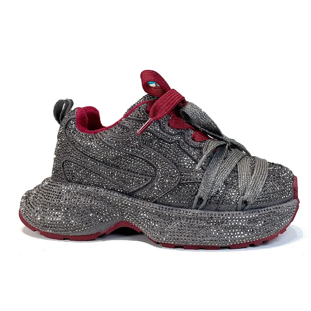TBS Fashion Girls Dorky Casual Shoes Fancy Sparkle Diamond-Studded Winter Personality Kid's Designer Clunky Sneakers