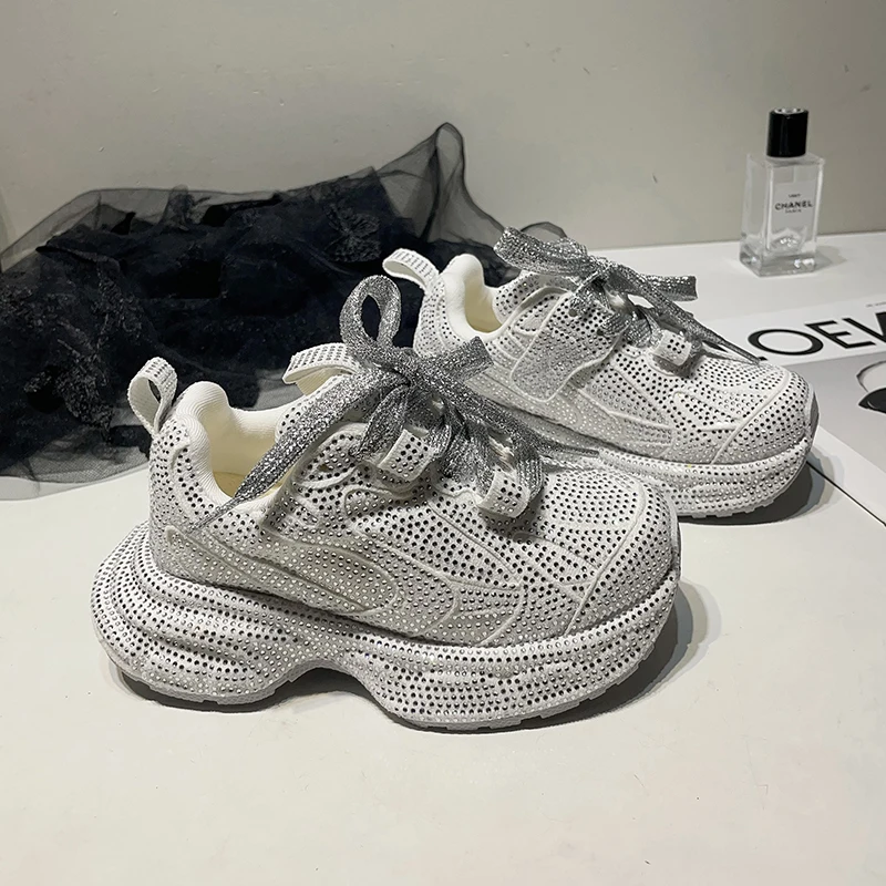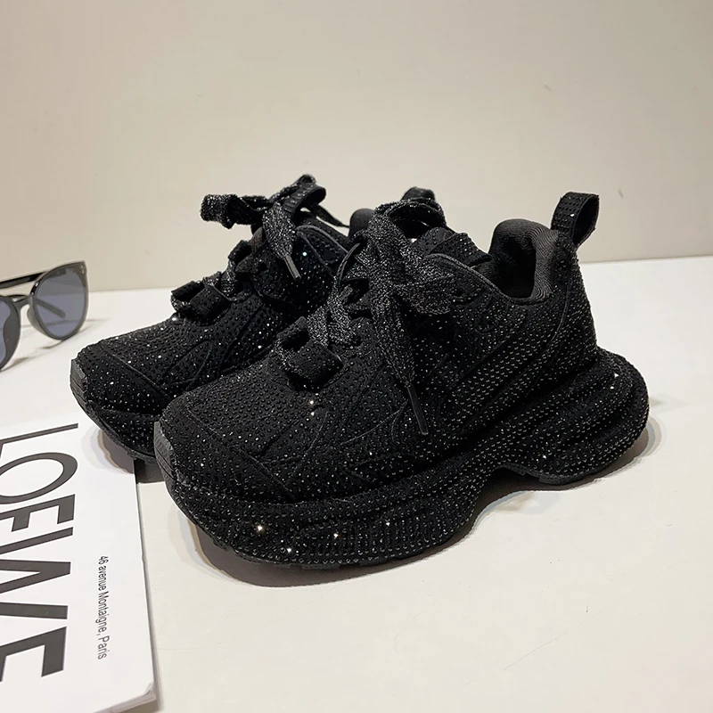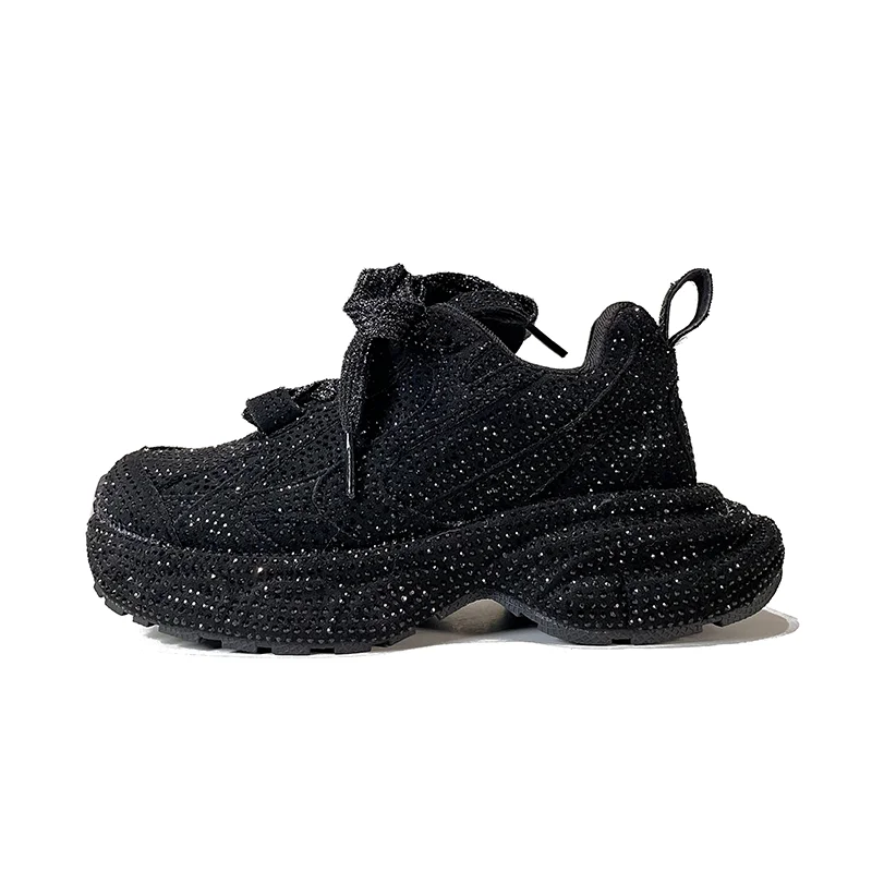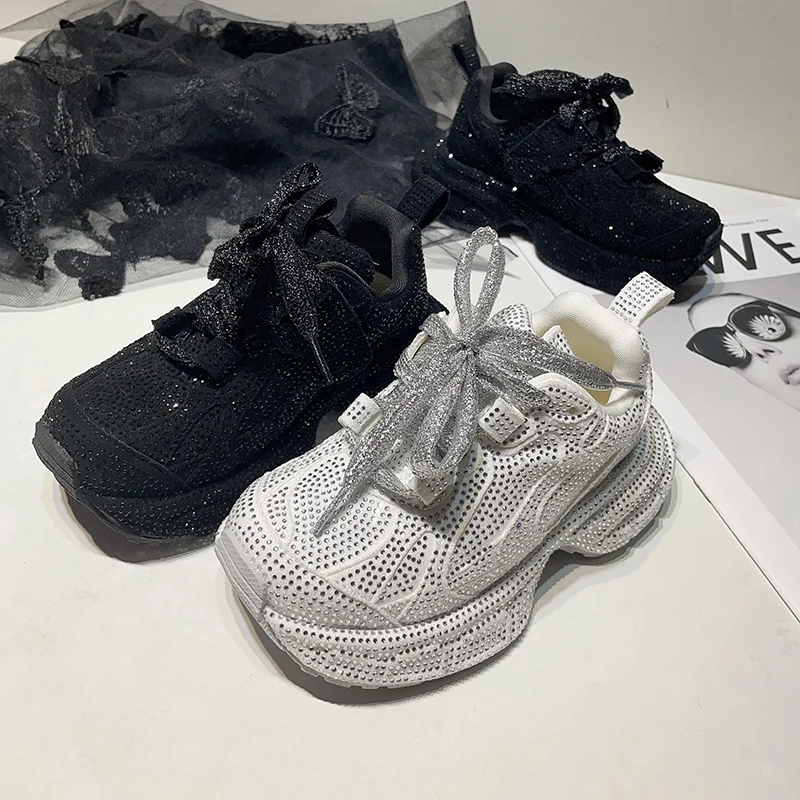 Upscale Designer New Style Full Diamond-Studded Sparkle Thick Sole Chunky Shoes Custom Bling Luxury Designer Girls' Sneakers