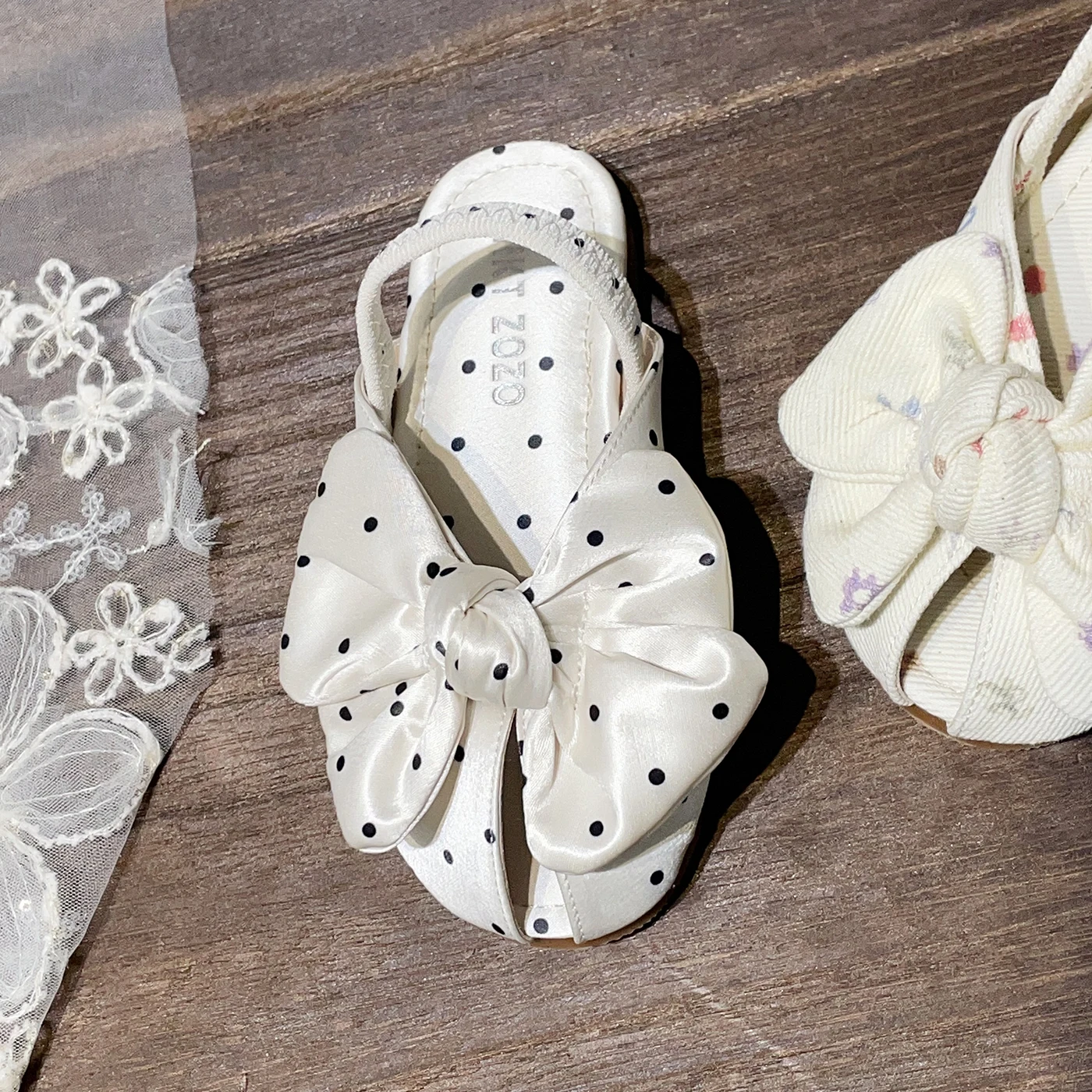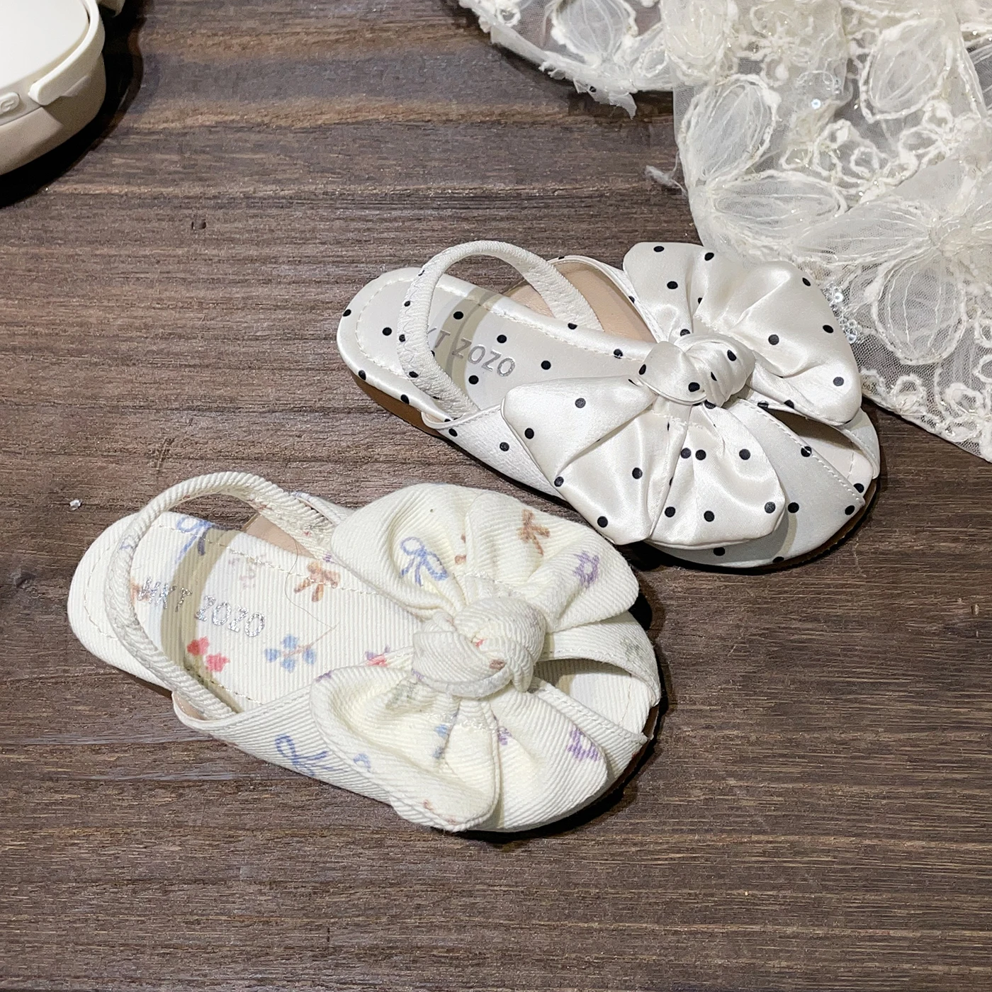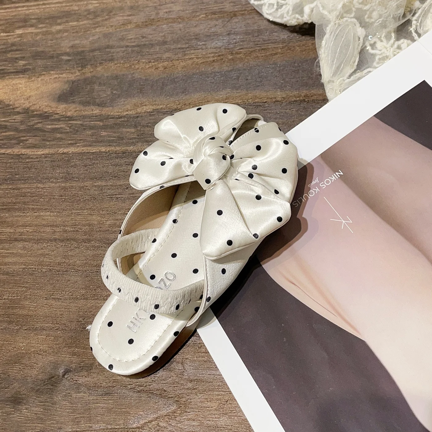 Summer New Korean Style Girls' Sweet Sandals for Little Girl Polka Dot Bow Princess Slip-On Breathable Features Kids Sandals