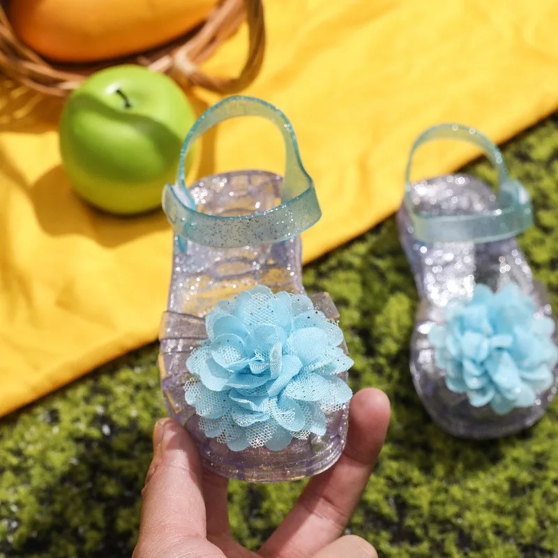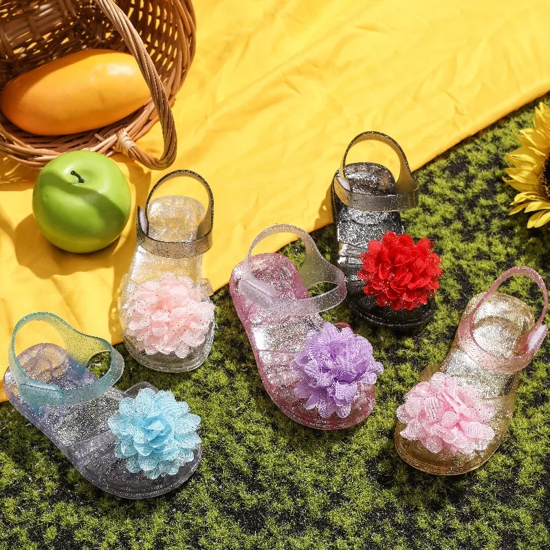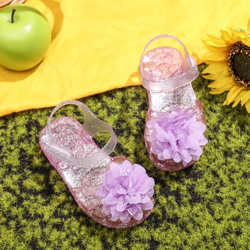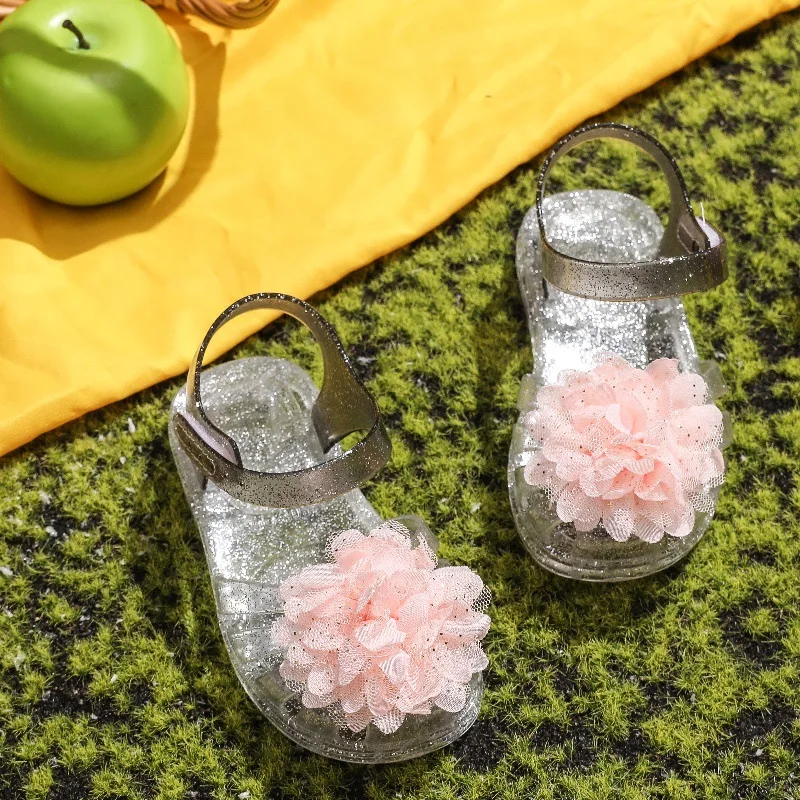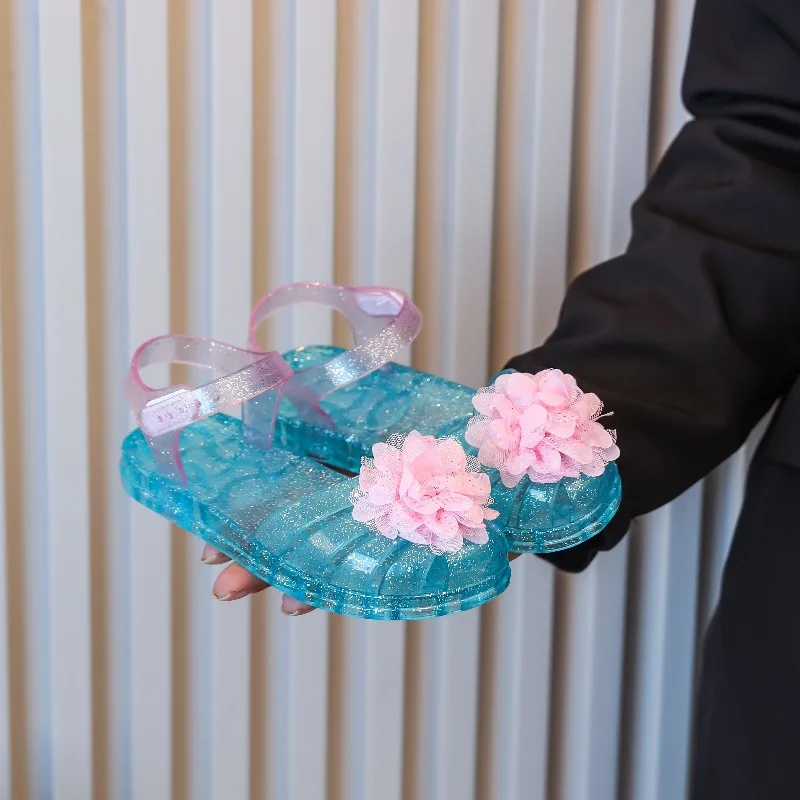 2026 Summer Jelly Beach Shoes for Girls Flower Design Non-Slip Soft Flat Sole Comfortable Sandals