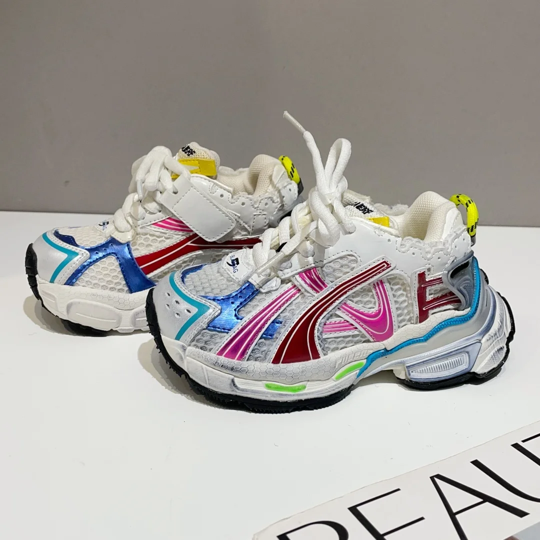 3 Colors Trendy Kids Designer Trunky Shoes Soft Soles Sports Run Shoes Distressed Chunky Sneakers for Child Boys Girls Unisex