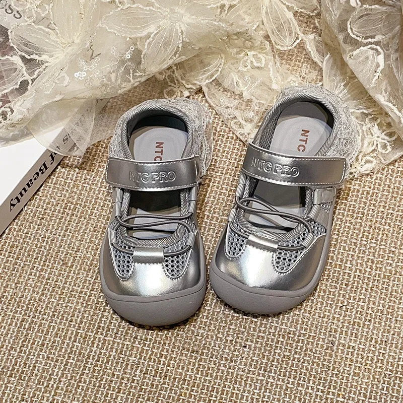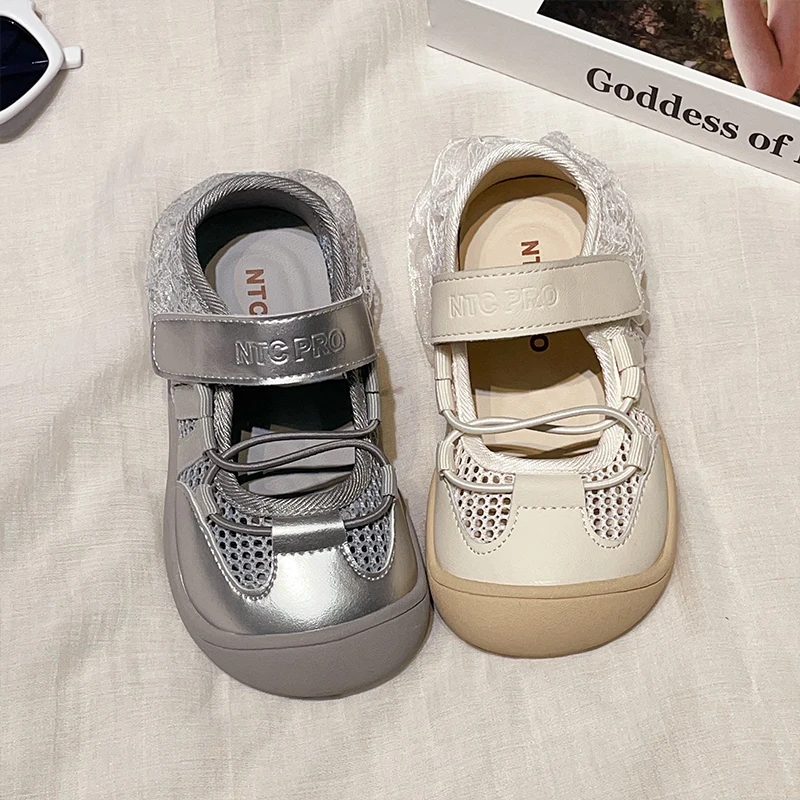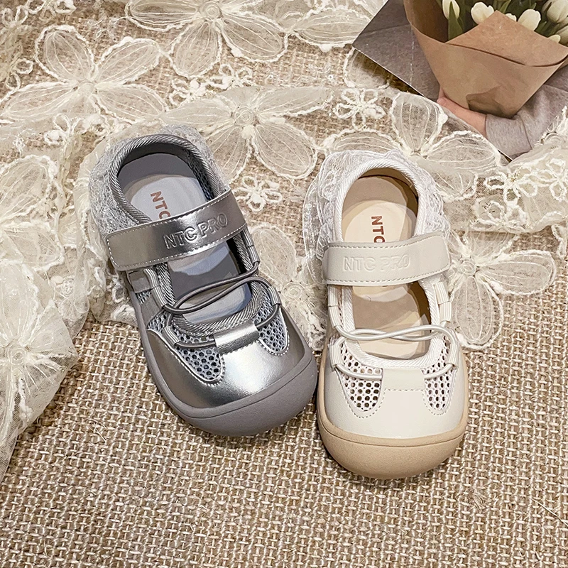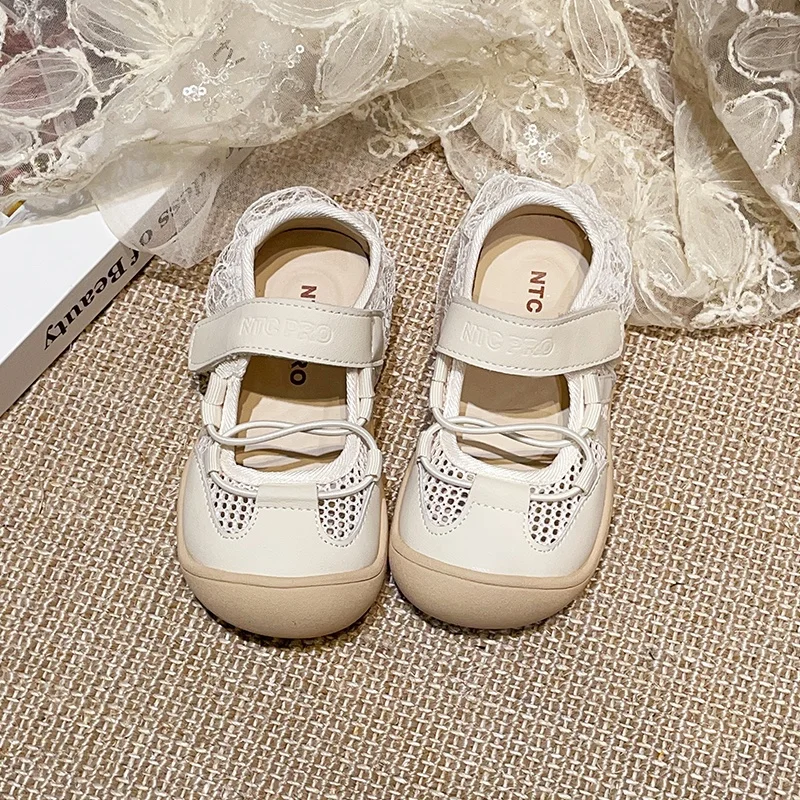 TBS Summer New Princess Shoes for Little Girls Lace Edge Mesh Breathable Outdoor Versatile Sports Shoes