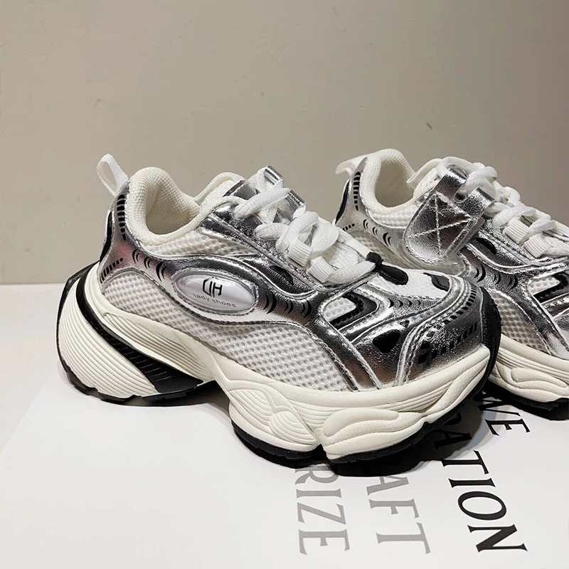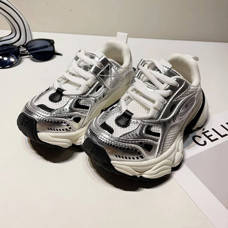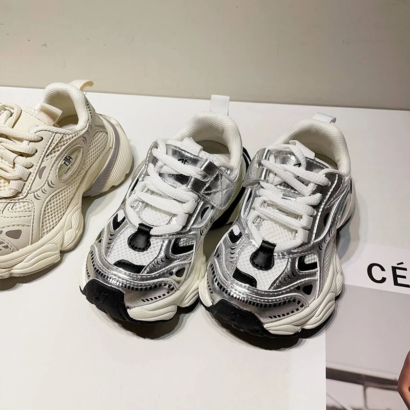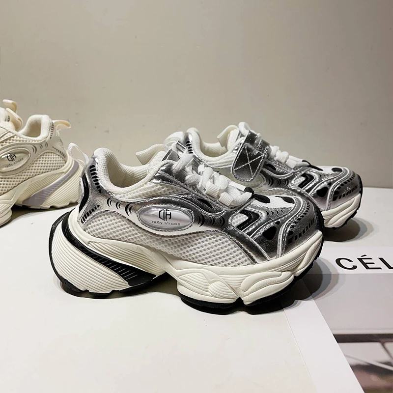 TBS Korean Style New Thick-Soled Sports Shoes for Girls and Boys Breathable Mesh Casual Sneakers for Kids Student