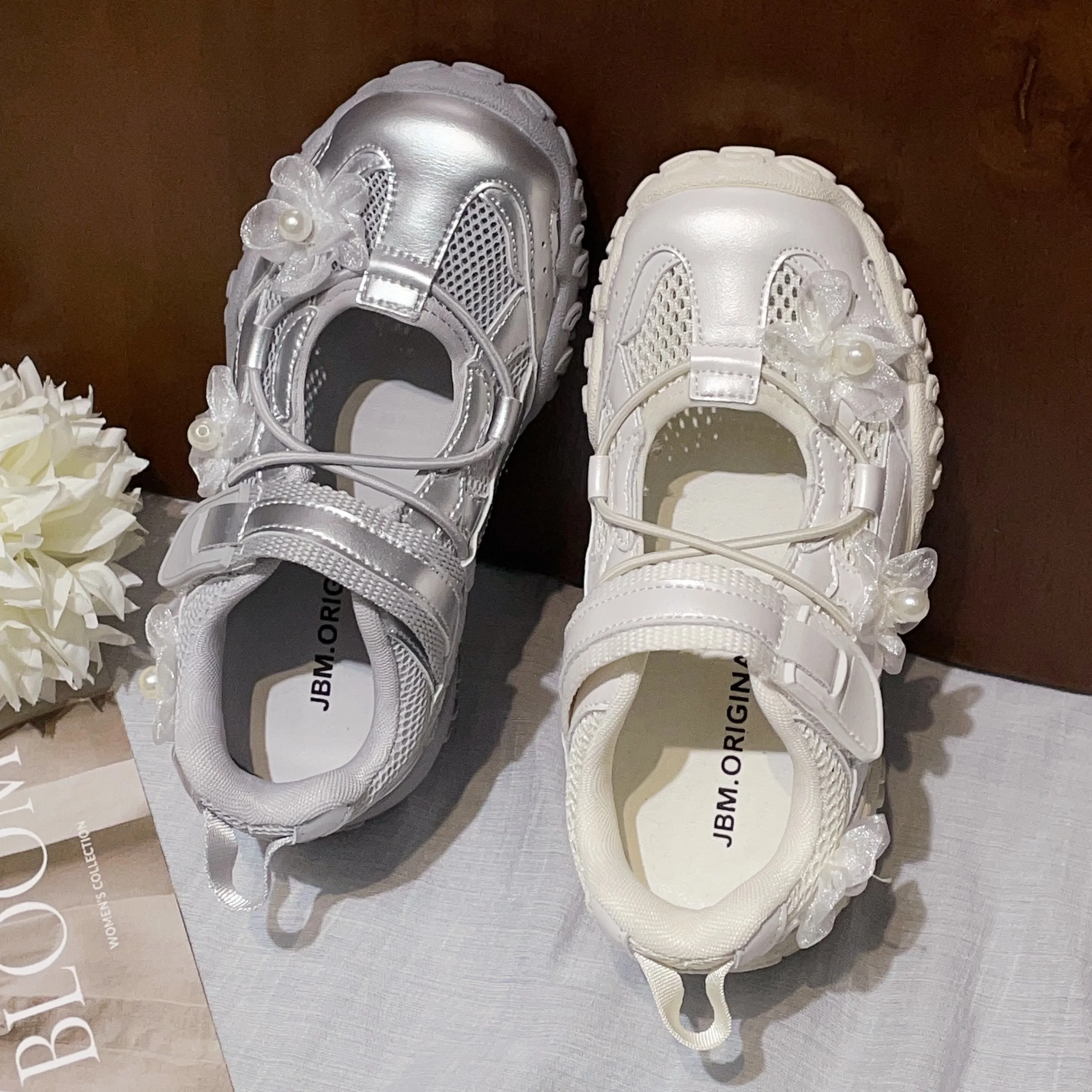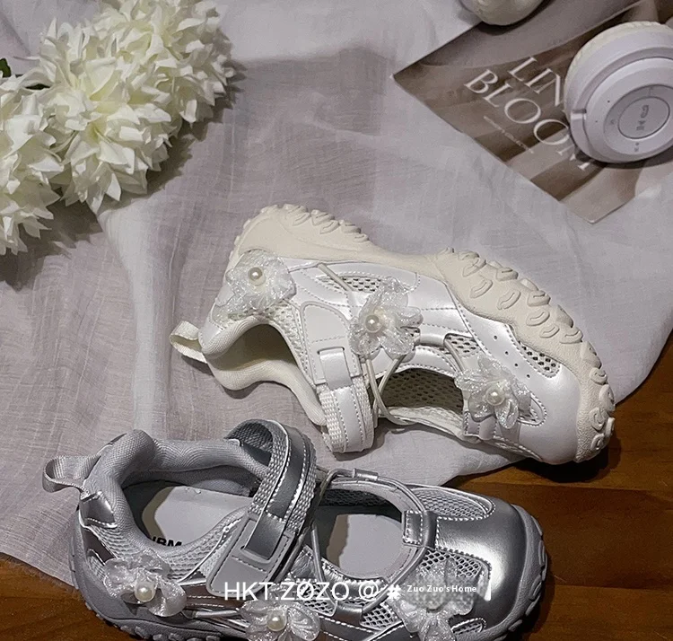 TBS New Korean Style Pearl Decoration Mary Jane Sneakers for Older Children Breathable Sweet Casual Shoes for Girls