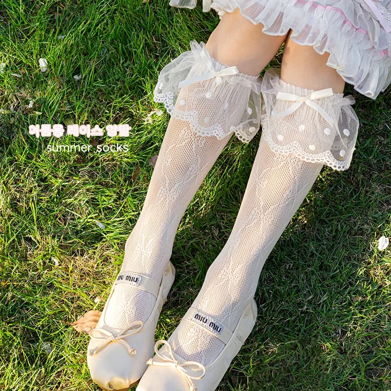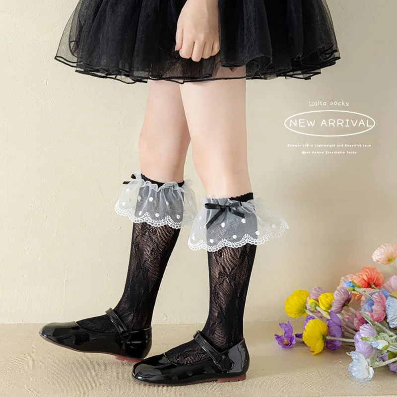 TBS Girl Kids Socks Elastic Fancy Cute Knee High Lace Ruffle White Long Socks for School Girls