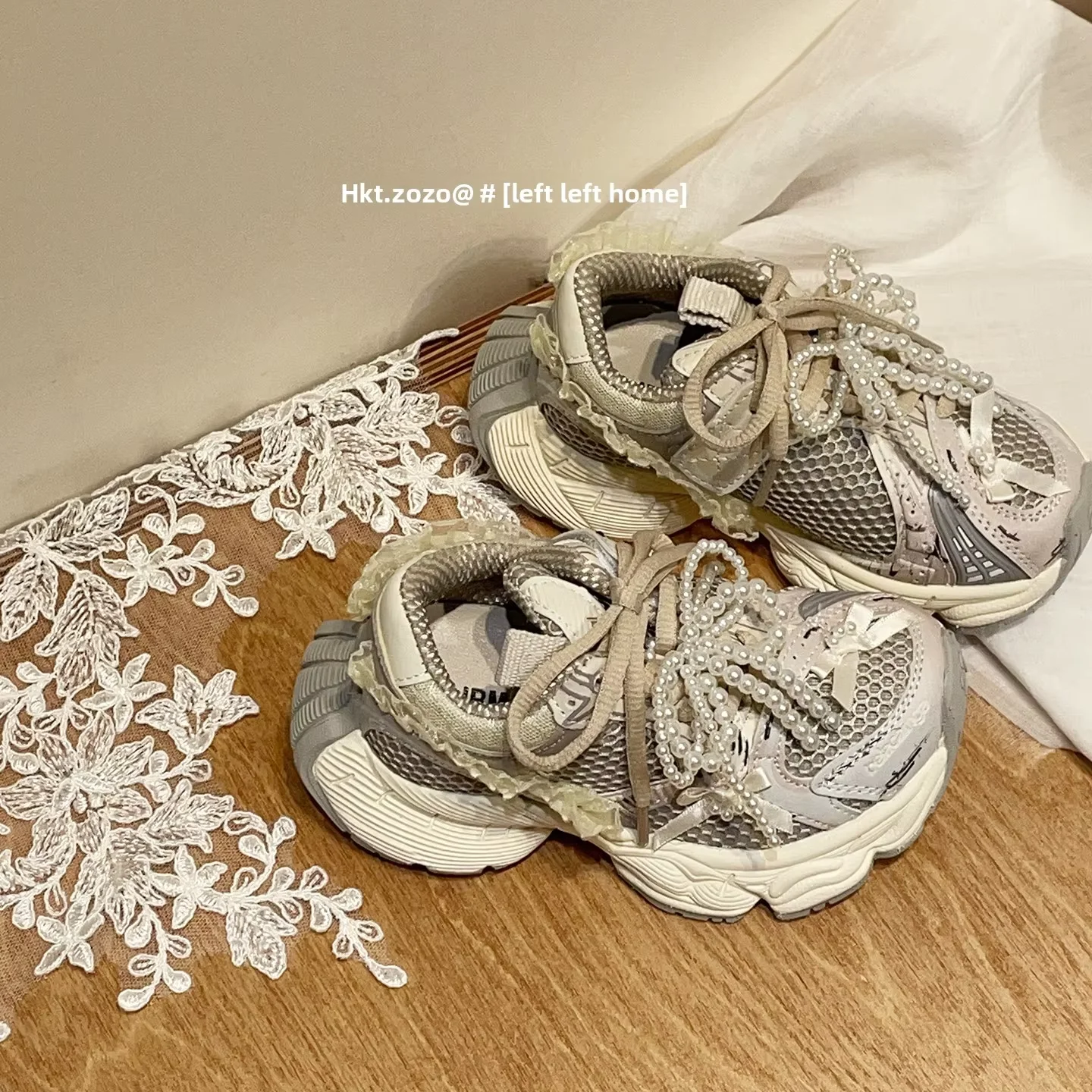 TBS Girls Pearl Bow Design Versatile Sneakers New Mesh Breathable Lightweight Casual Sports Shoes