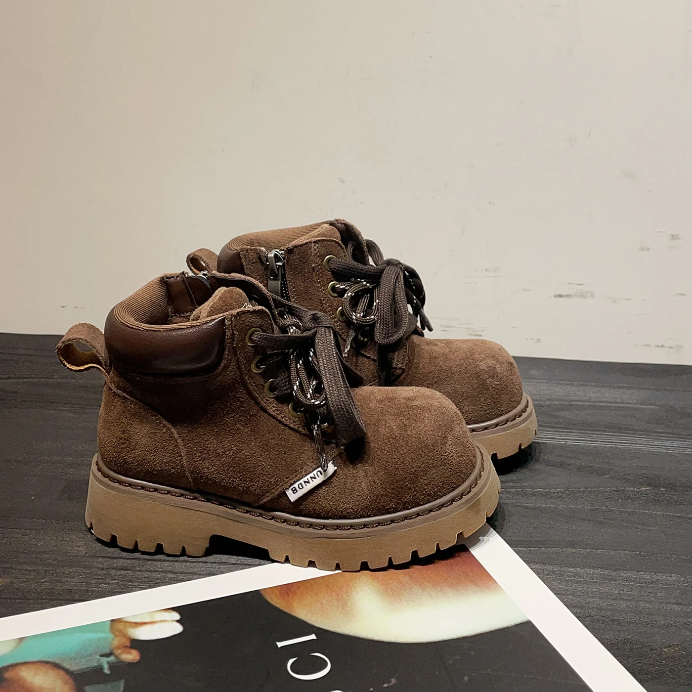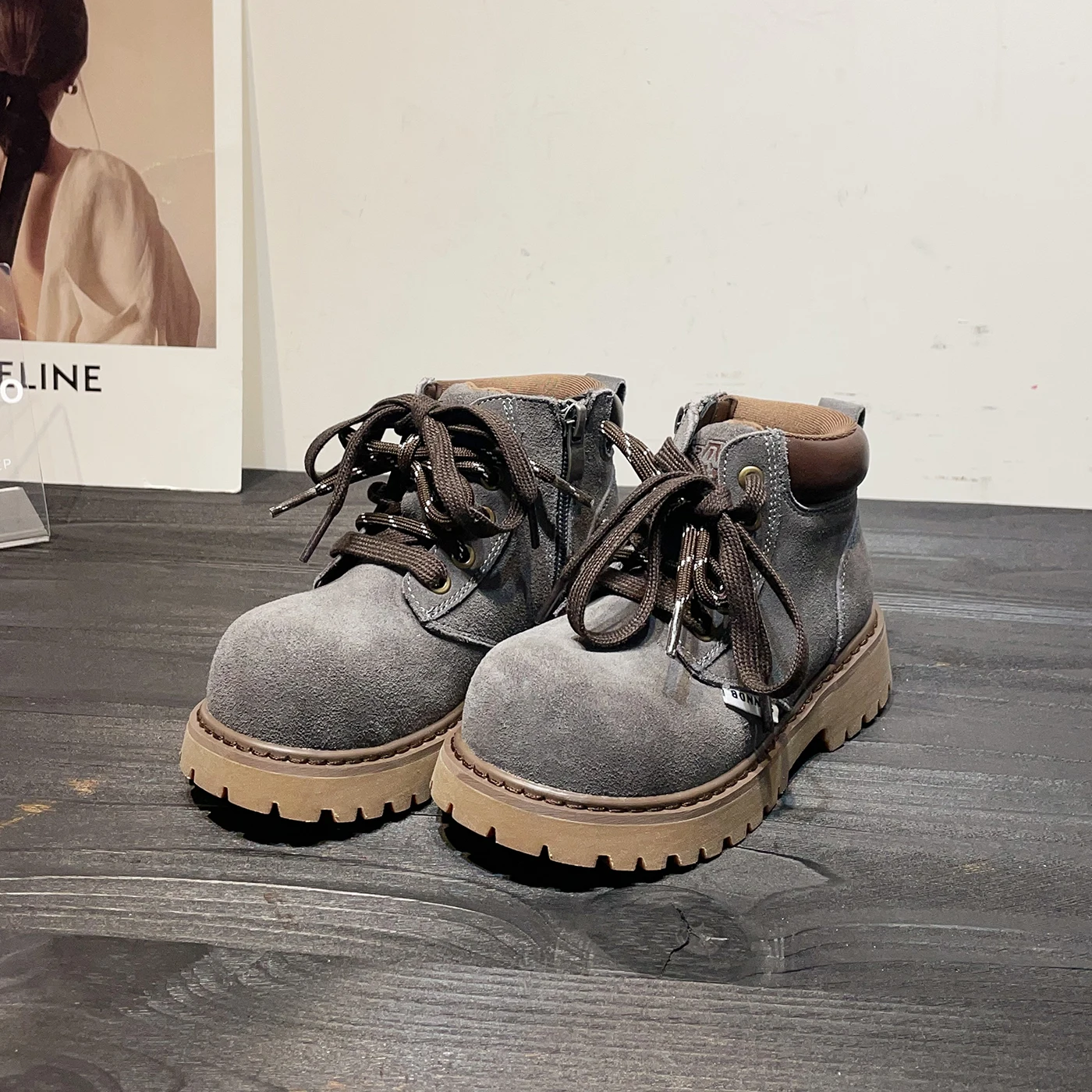 Girls' British Style Mid-Calf for Boots 2026 Autumn Fashionable Chimney Short Artificial Leather Side Zipper Rubber Outsole