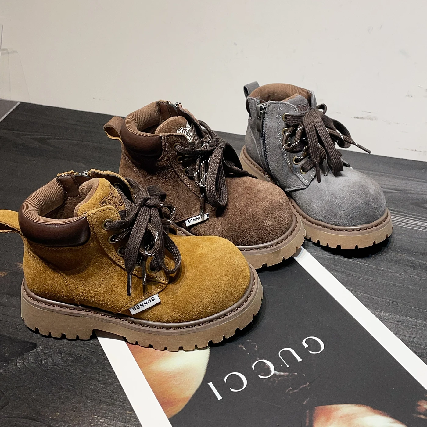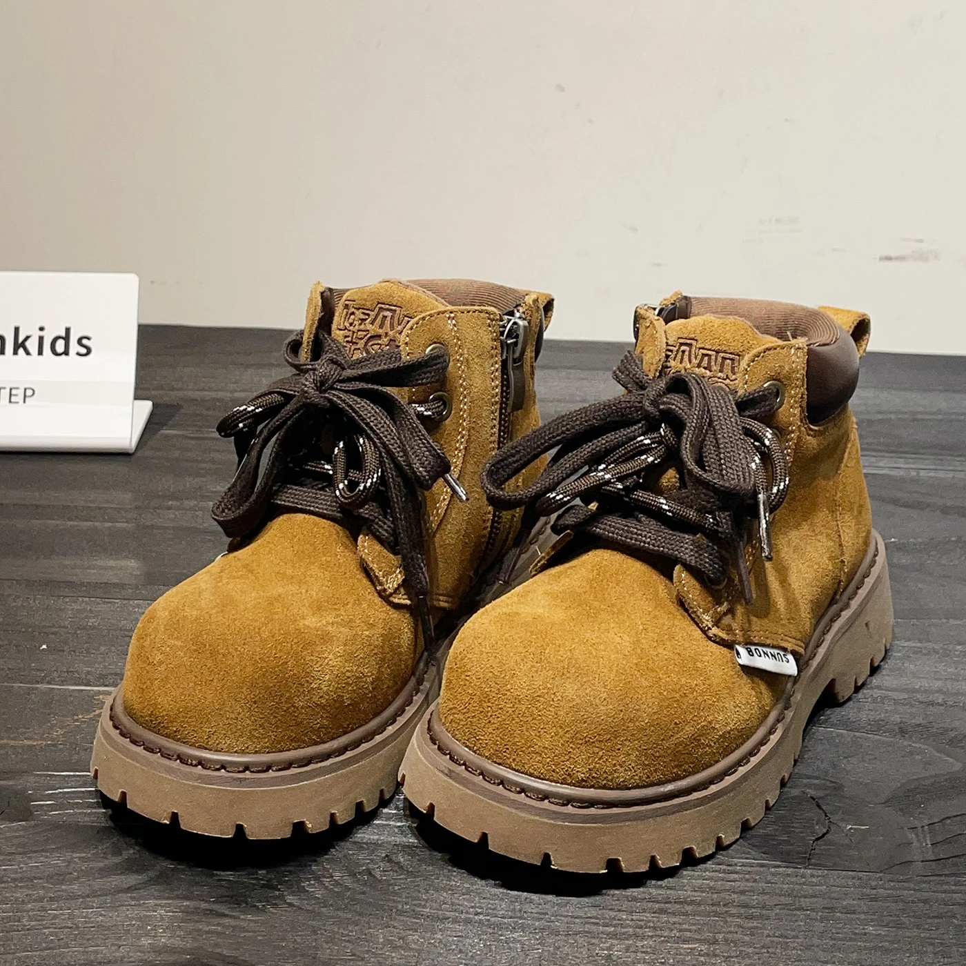 TBS Trendy Warm Yellow Zipper for Martin Boots Autumn Winter Short Plush-Lined Kids Heat-Retaining Children's Unisex Booties
