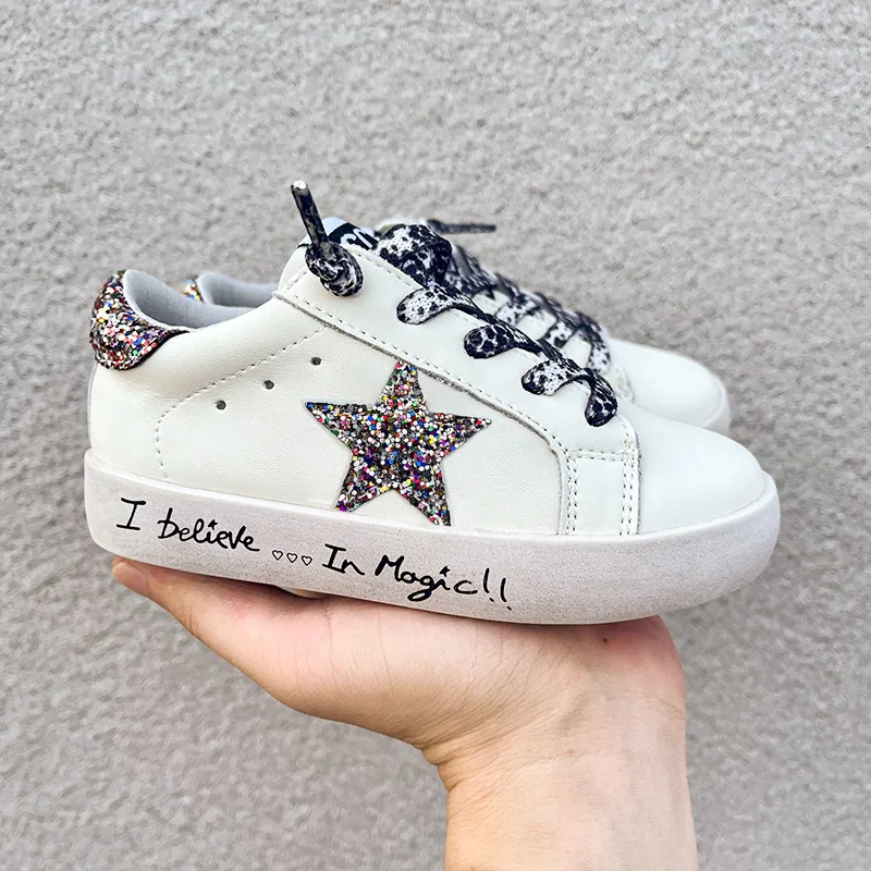 Custom Designer Boys Leopard Shoelace Walking Shoes Colorful Designer Sneakers Glitter Star Kids' Sport Shoes