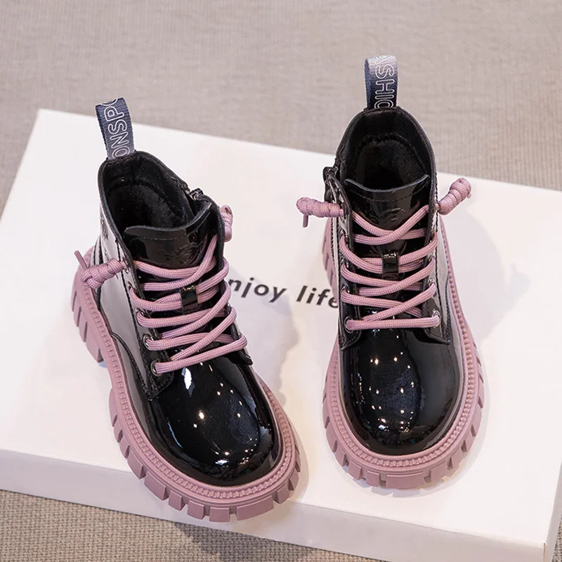 Girls' British Style Mid-Calf for Boots 2026 Autumn Fashionable Chimney Short Artificial Leather Side Zipper Rubber Outsole