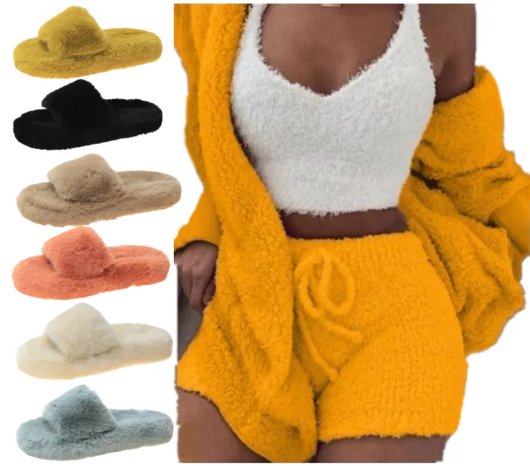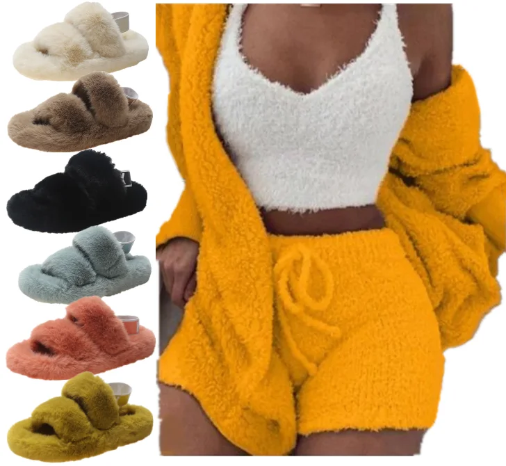 Custom Logo Ladies Sexy Warm Plush Pajamas Set Women Sleepwear 3 Pieces Shorts Lingerie Nightwear and Long Robe