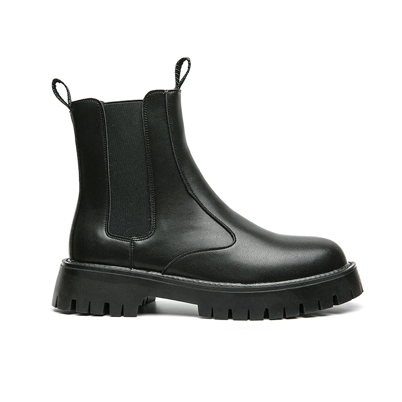 Dropshipping Classic High Top Leather Boot Comfortable Platform Fur Winter Warm Men Black Chelsea Boots